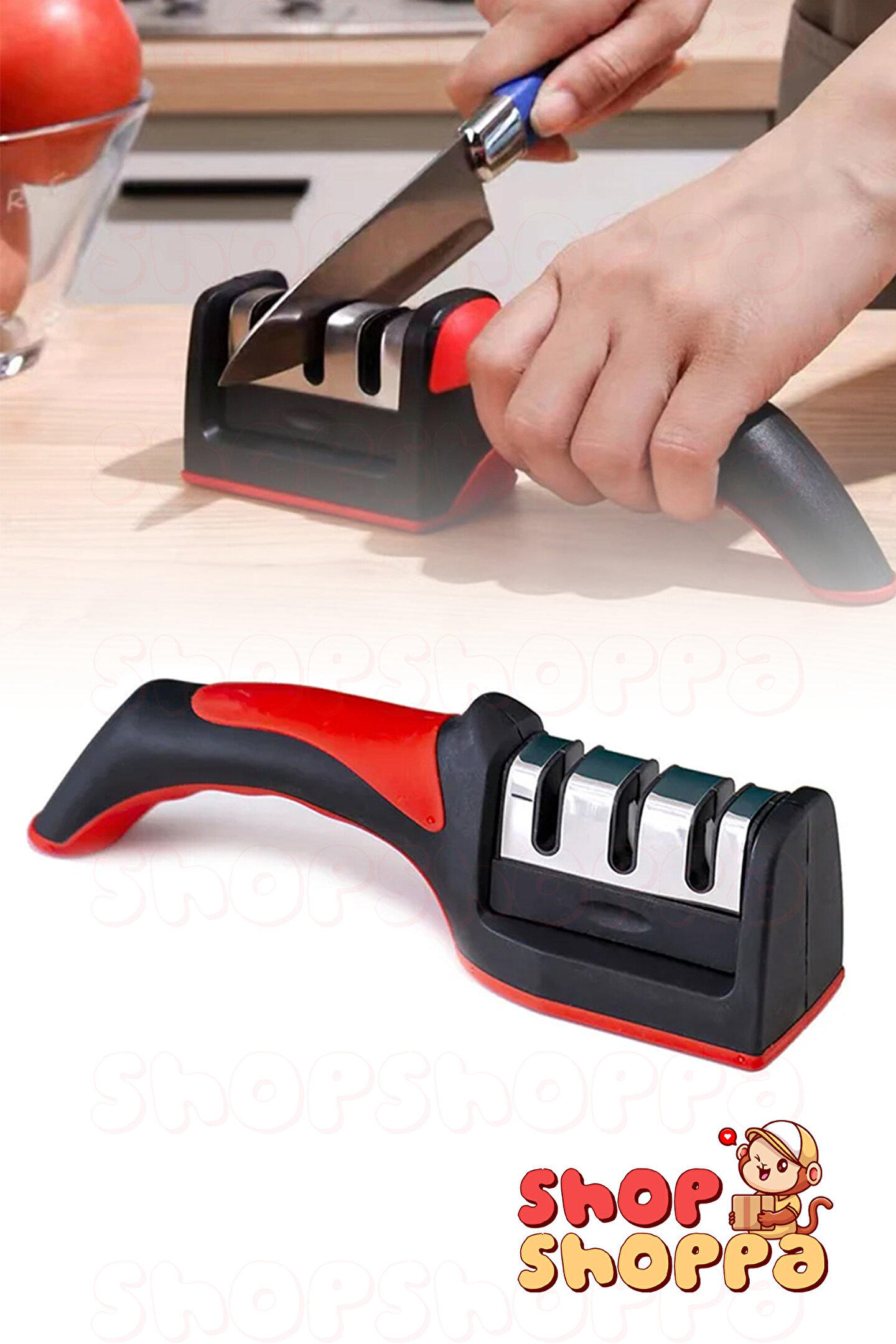 ShopShoppa Paslanmaz Çelik Bıçak Satır Bileme Aparatı, Tutmalı Güvenli Çok Fonksiyonlu 3 Aşamalı Bileyici