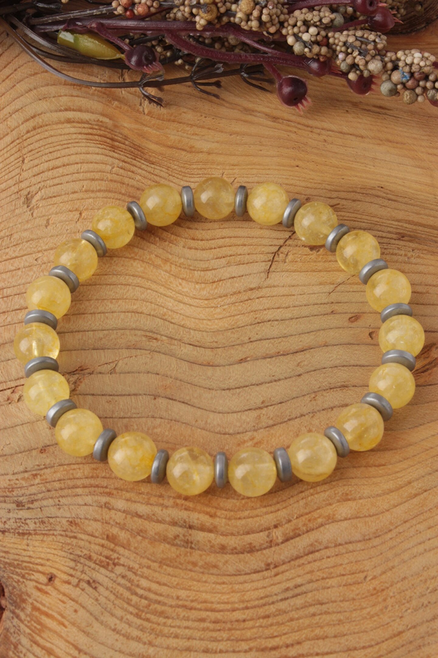 Dogal Taş Bileklik Zihin Duruluğu Kristal Kuvars ve Sitrin Birlikteliği 6mm AA Kaliteli Kristal