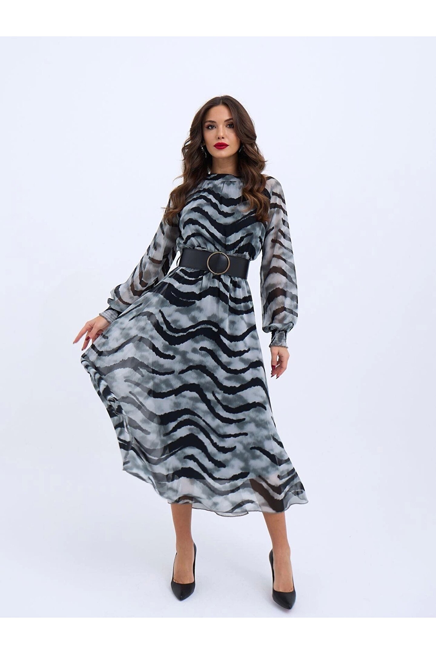 Modelin Ölçüleri: Boy:165, Kg:55, Göğüs:90, Bel:72, Kalça: 100
