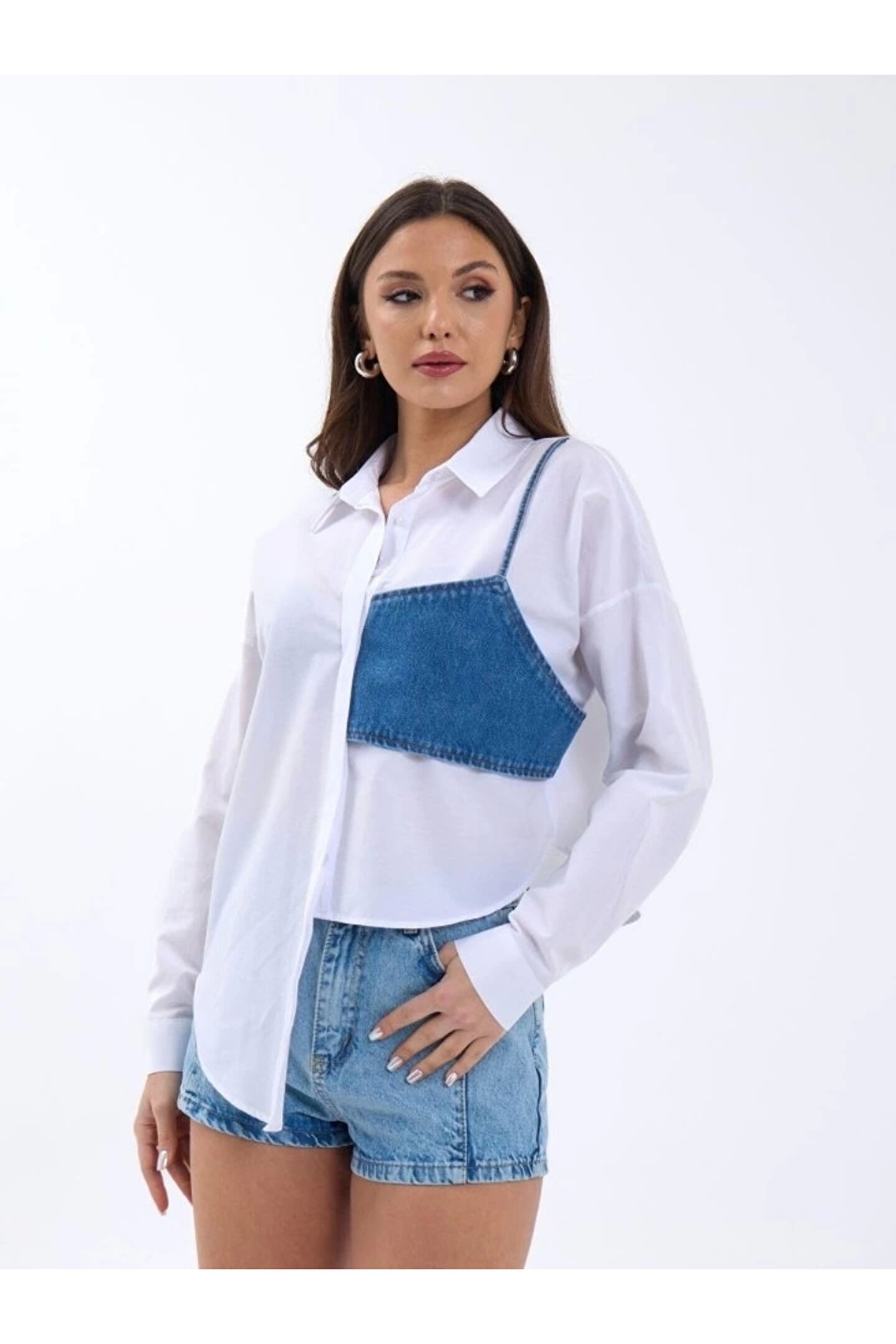 5419 GÖMLEK-MAVİ CEPLİ BEYAZ
