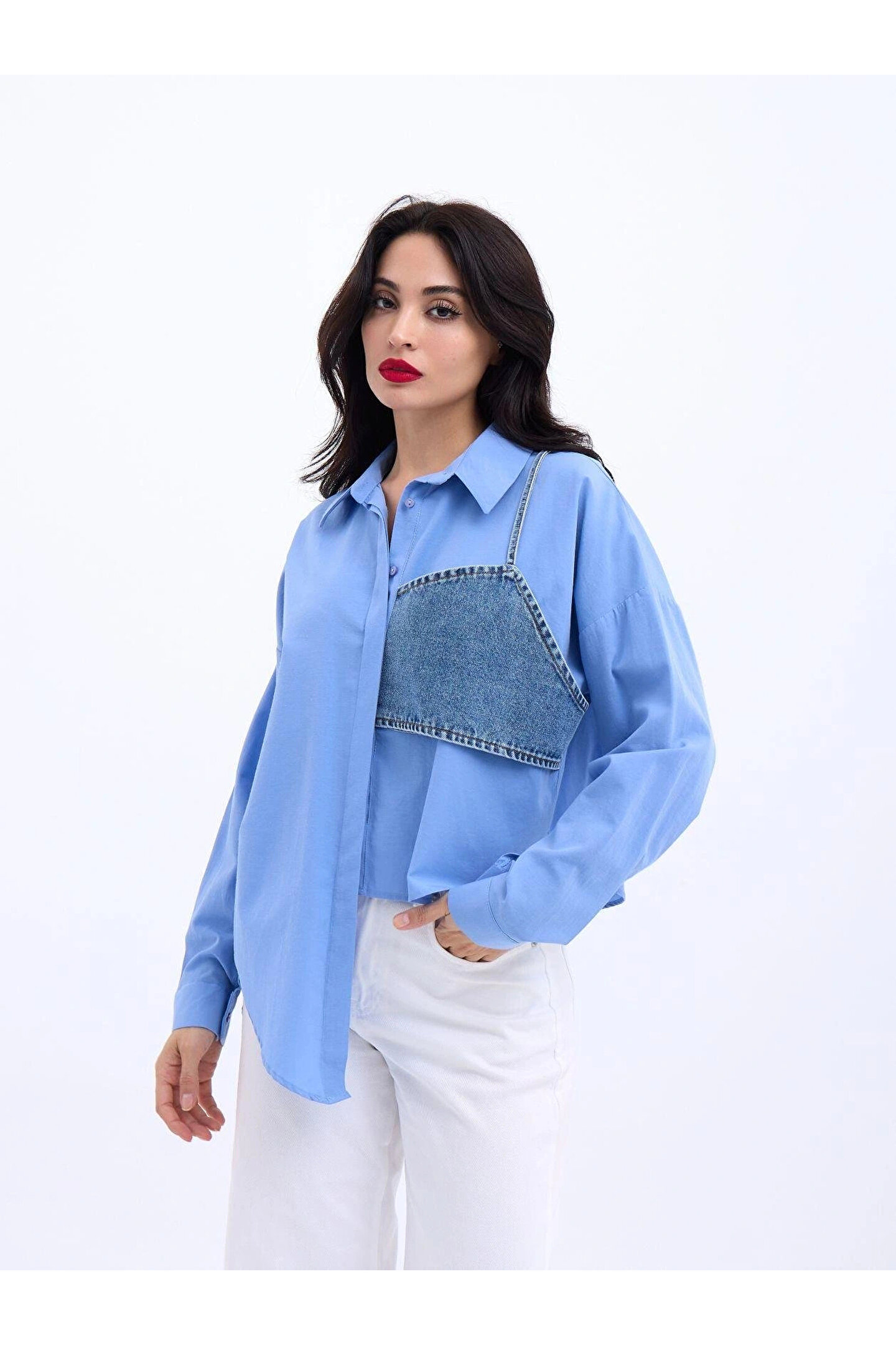 Kadın Uzun Kollu Yakalı önden Düğmeli Cep Detaylı Kadife Gömlek