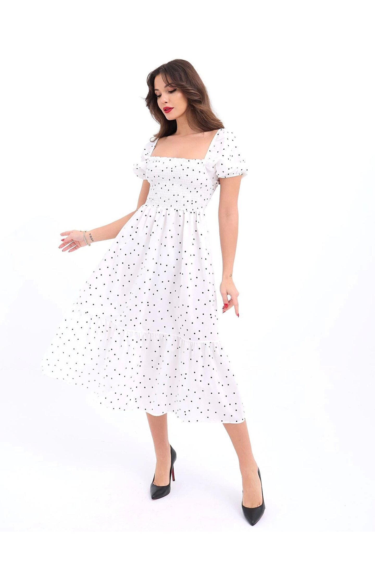 Modelin Ölçüleri: Boy:165, Kg:55, Göğüs:90, Bel:72, Kalça: 100