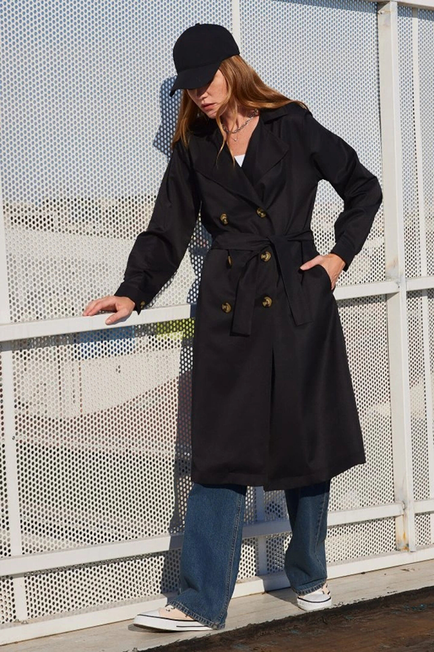 Silerra 5853 Kruvaze Yaka Trençkot - Siyah