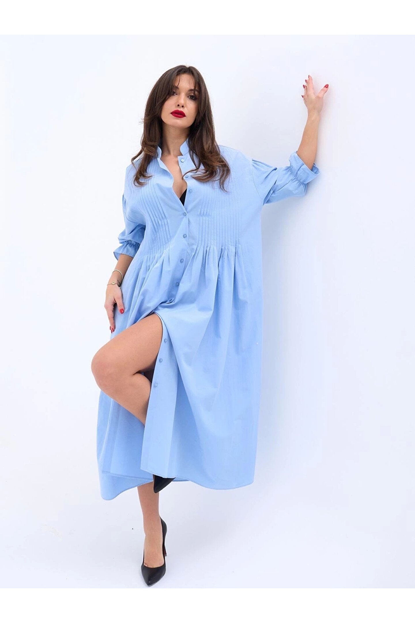 Modelin Ölçüleri: Boy:165, Kg:55, Göğüs:90, Bel:72, Kalça: 100
