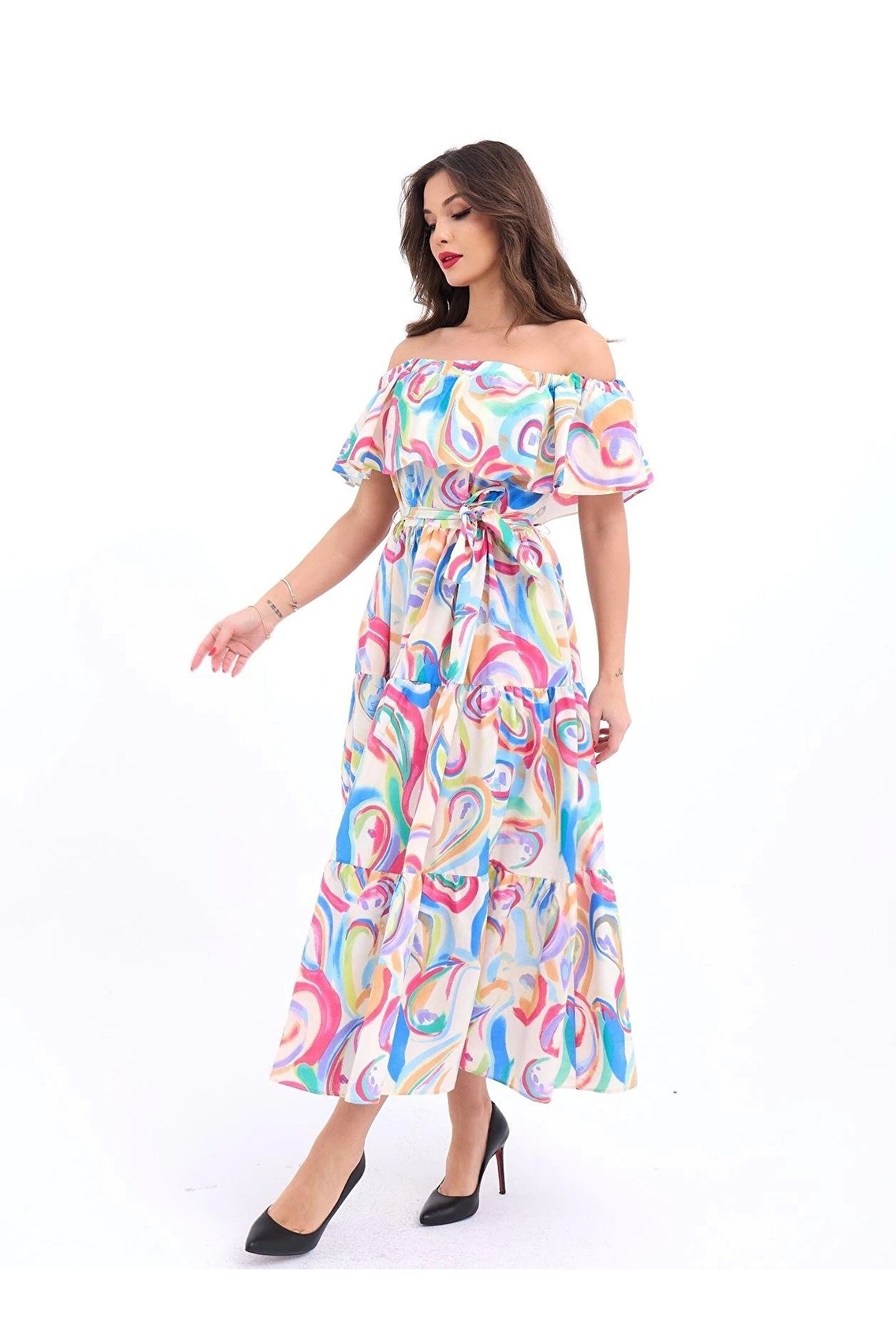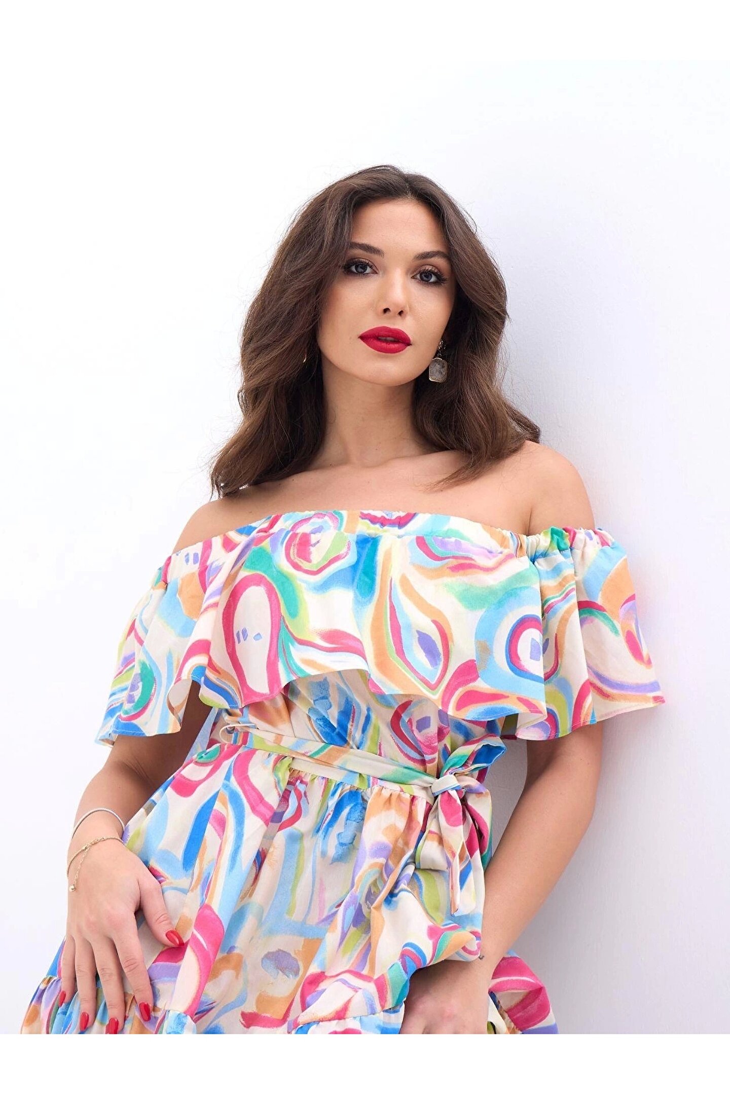 Modelin Ölçüleri: Boy:165, Kg:55, Göğüs:90, Bel:72, Kalça: 100