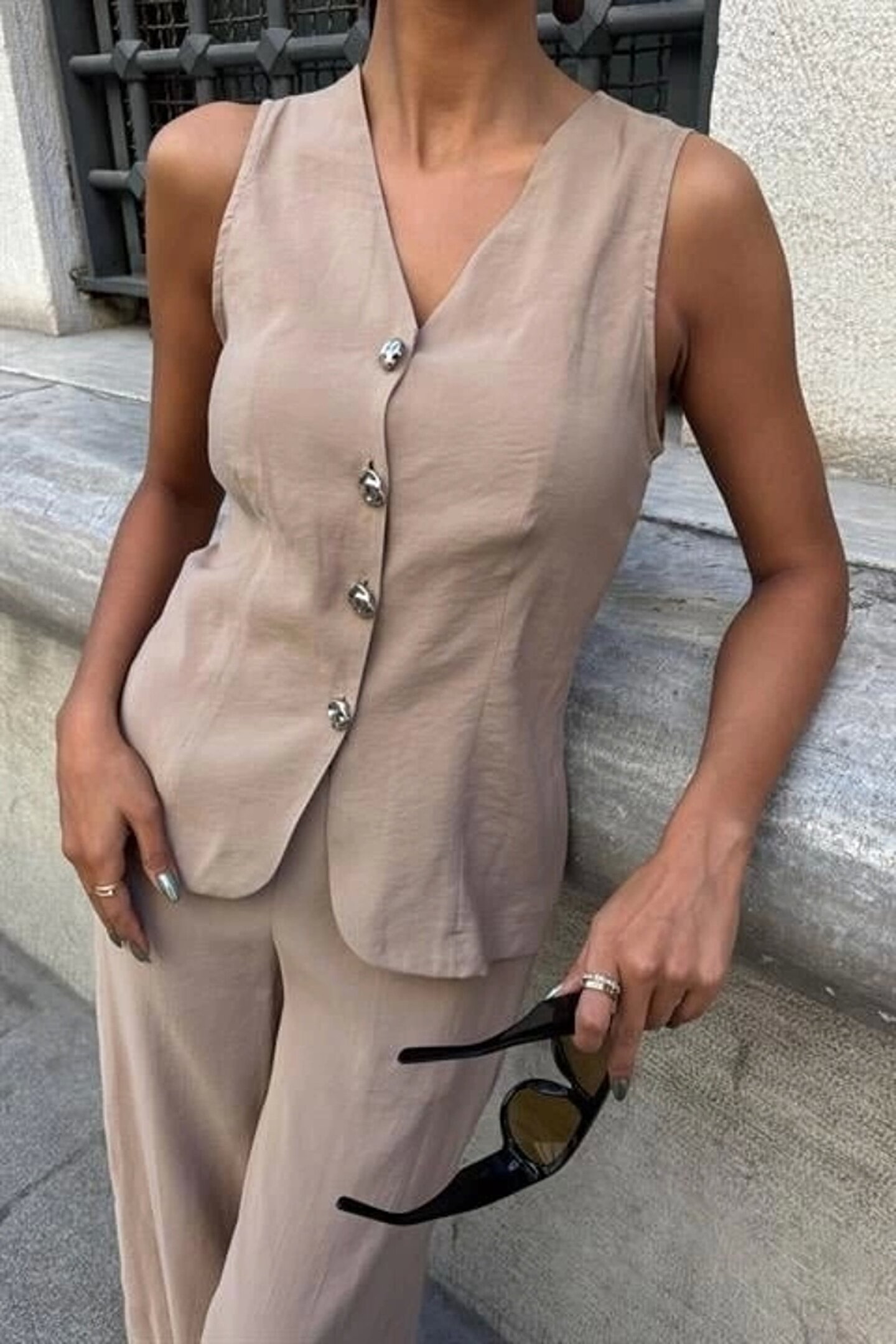 Silerra Arkası Bağcıklı Yelek Plazza Pantolon Modal Takım 10202-08