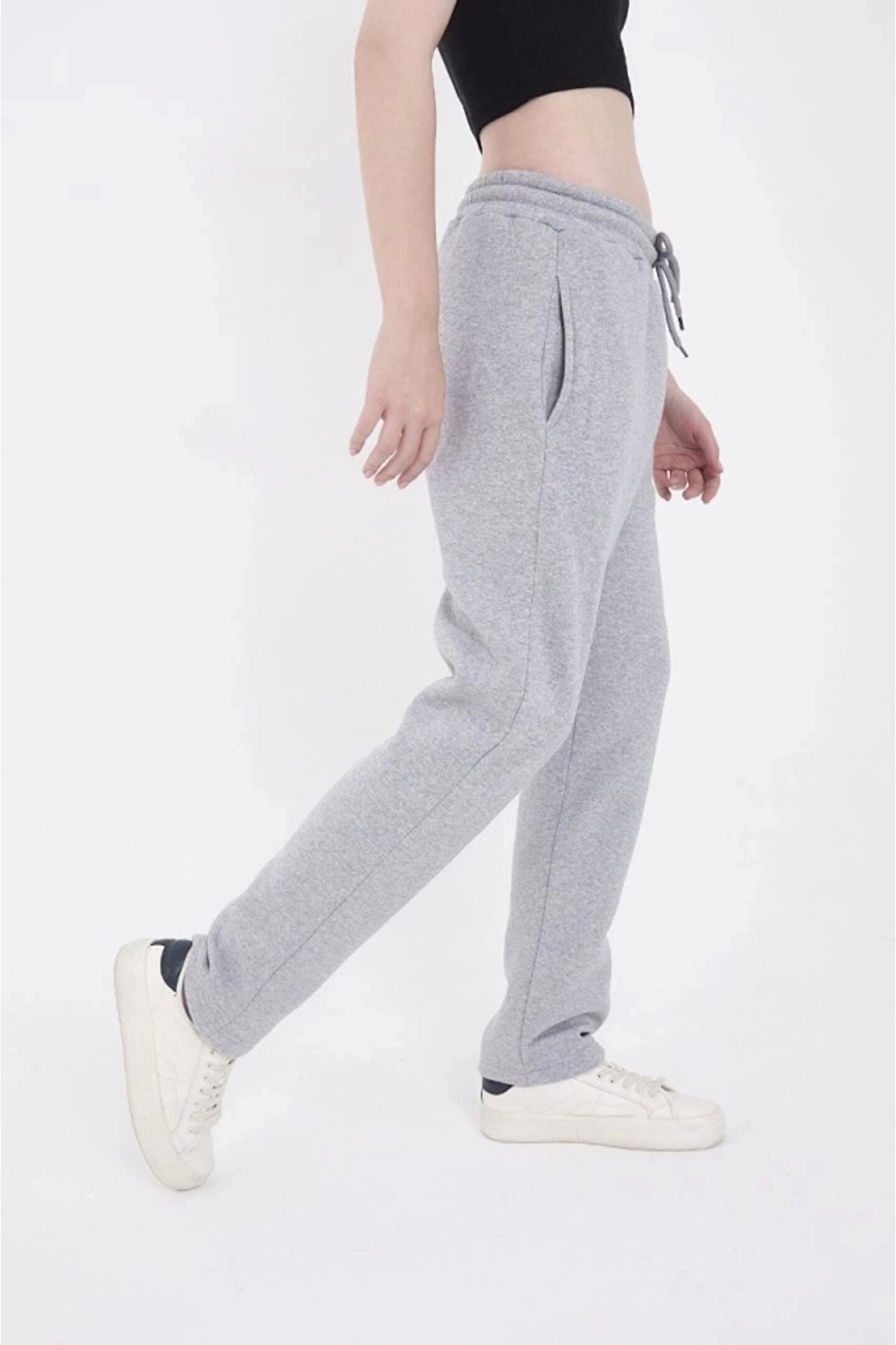 Lastikli baskılı eşofman pantolon - Gri modelin ölçüleri: Boy:165, kg:55, göğüs:90, bel:72, kalça: 100 modelin üzerindeki ürün m/38 bedendir