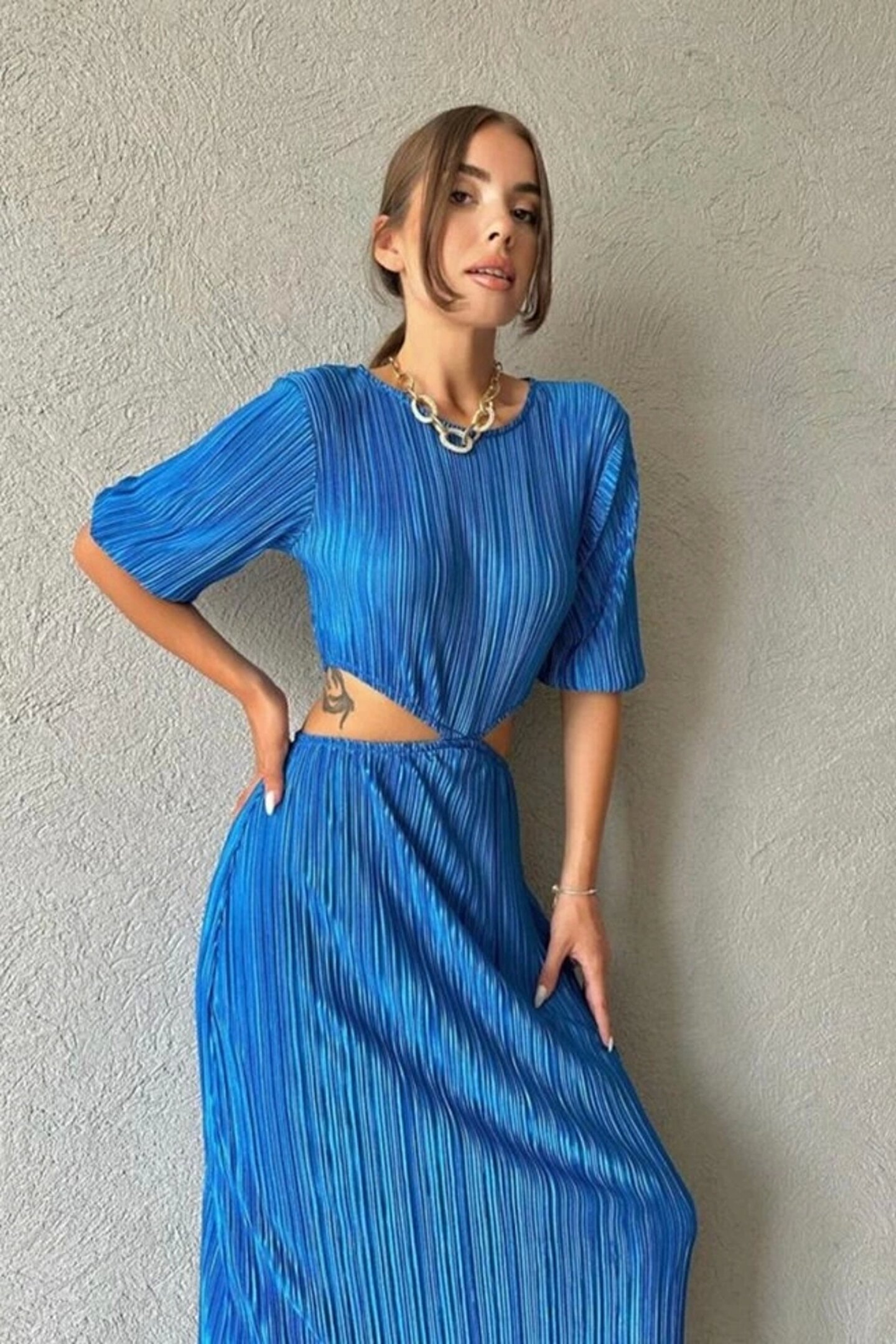 Mavi Piliseli Elbise