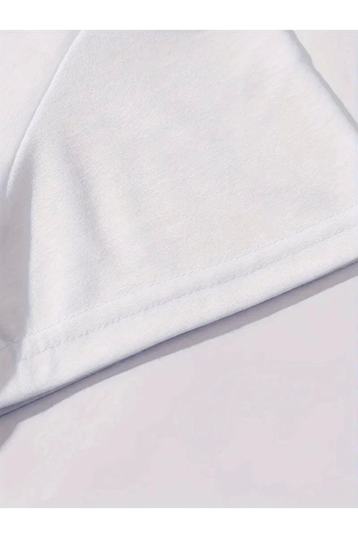 Baskılı Oversize Bisiklet Yaka T-shirt - Beyaz