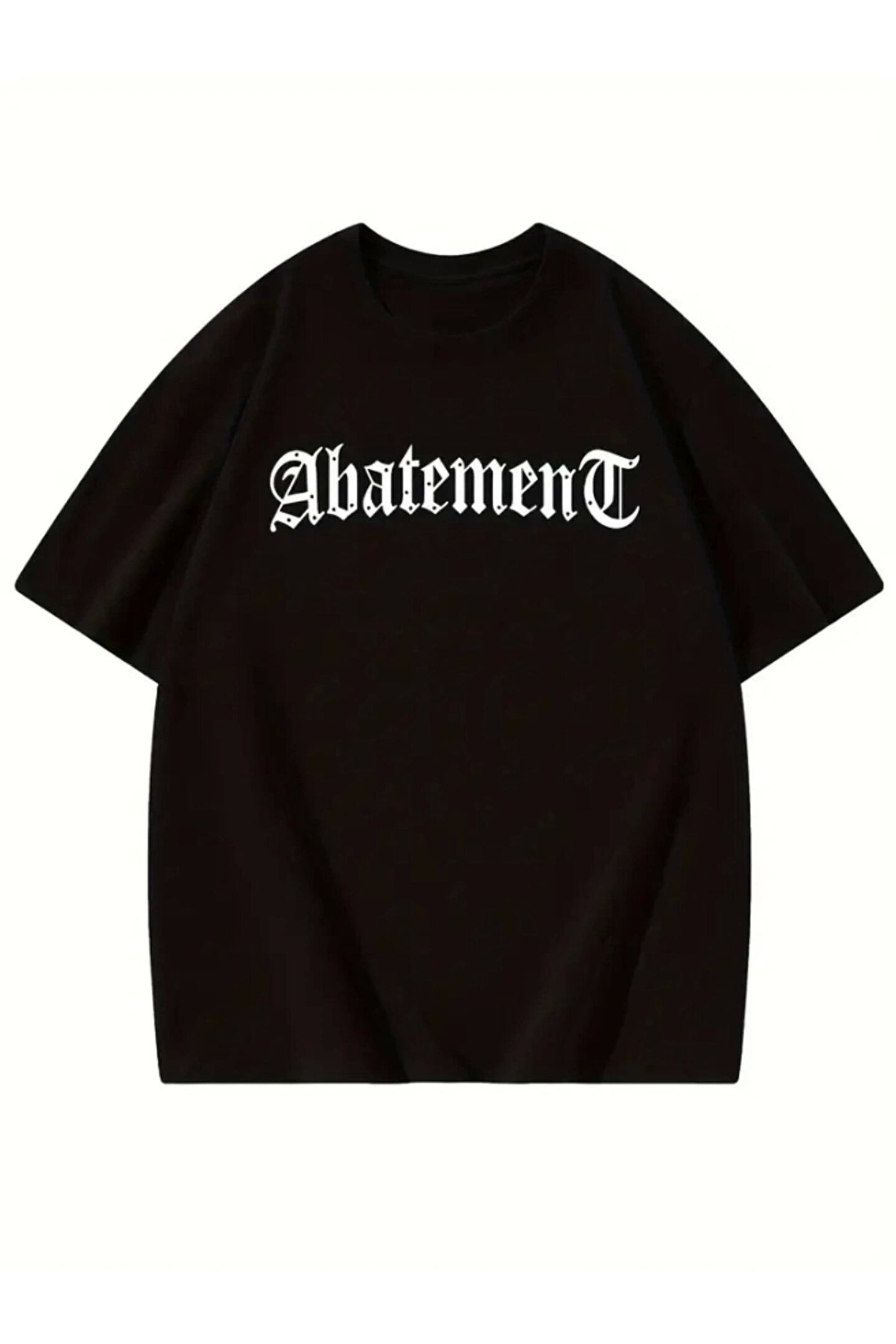 Baskılı Oversize Bisiklet Yaka T-shirt - Siyah