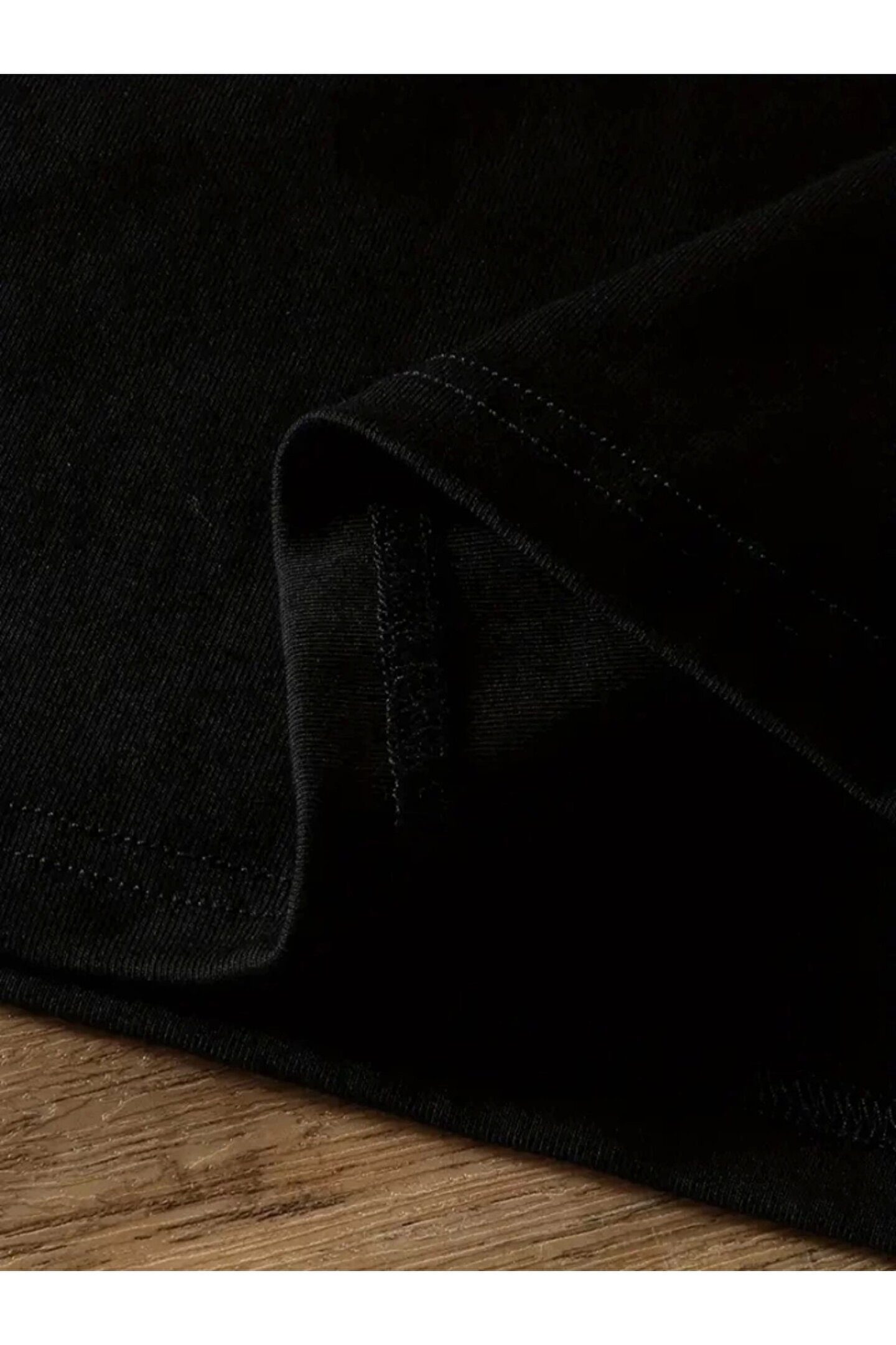 Baskılı Oversize Bisiklet Yaka T-shirt - Siyah