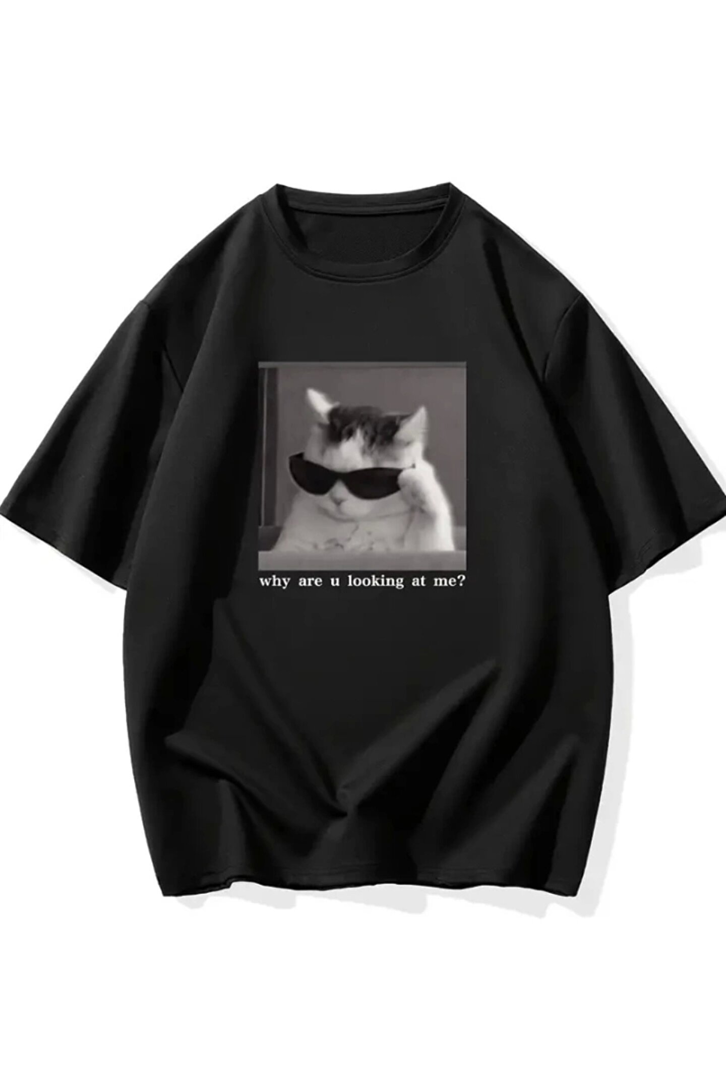 Baskılı Oversize Bisiklet Yaka T-shirt - Siyah