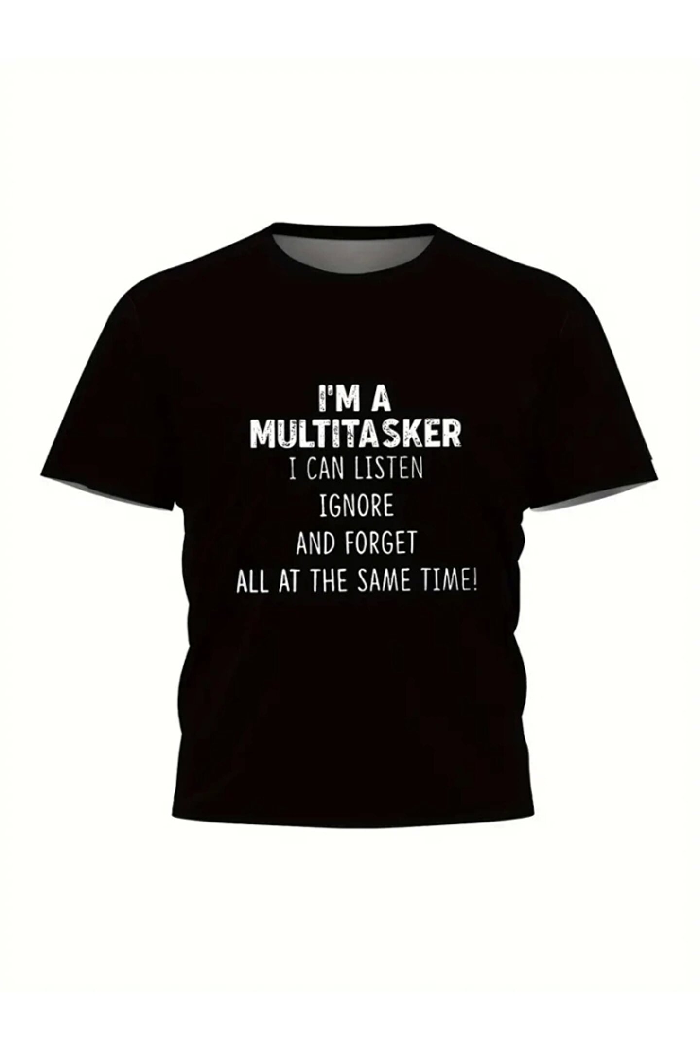 Baskılı Oversize Bisiklet Yaka T-shirt - Siyah