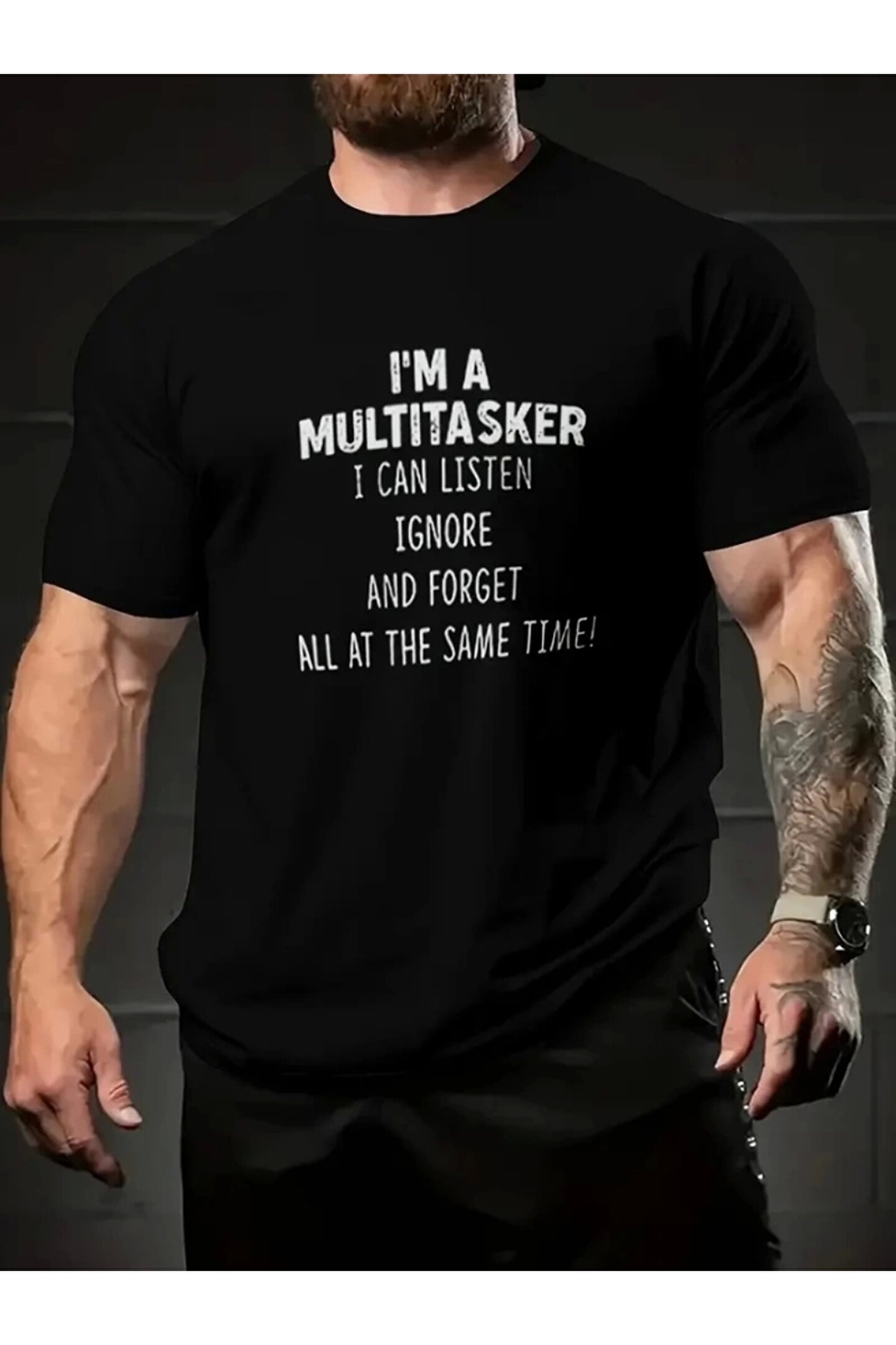 Baskılı Oversize Bisiklet Yaka T-shirt - Siyah