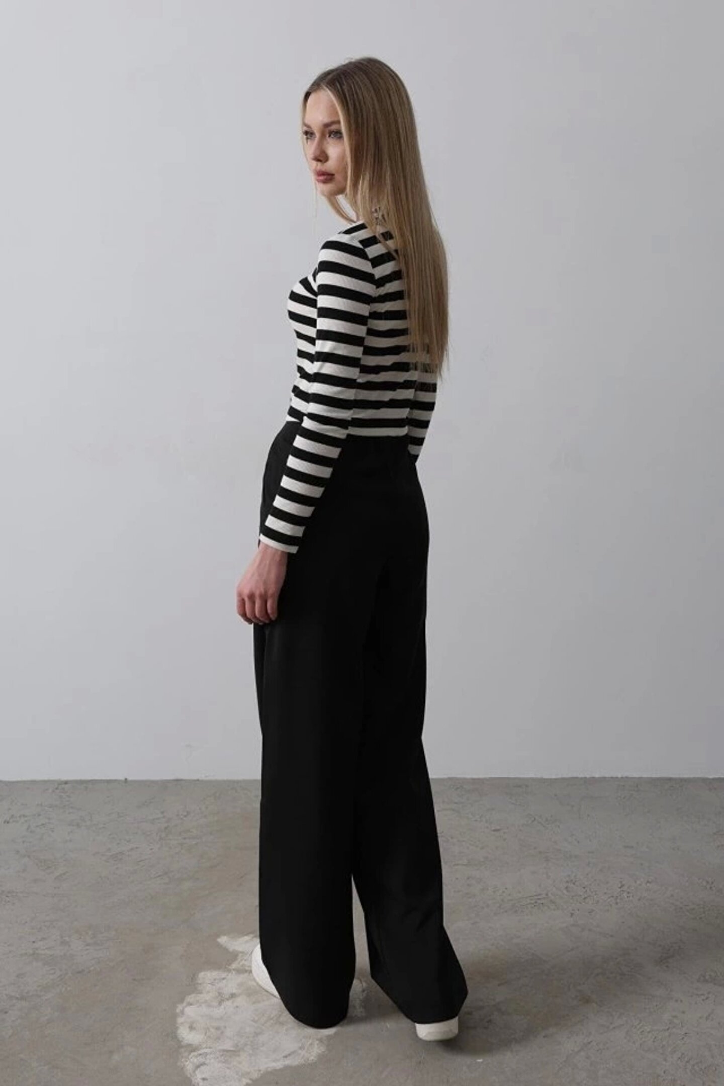 Silerra Beli Yarım Lastikli Palazzo Pantolon - Siyah