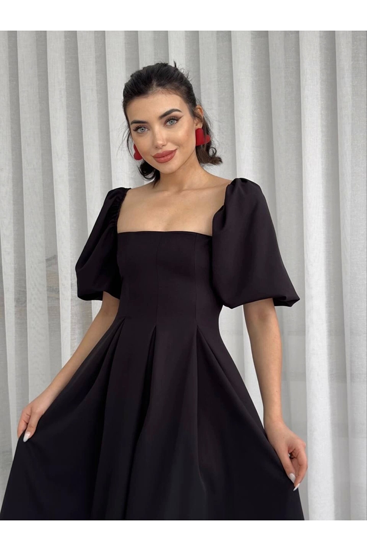 Pile Etek İnce Askılı Korse Formlu Poplin Kumaş Siyah Midi Elbise