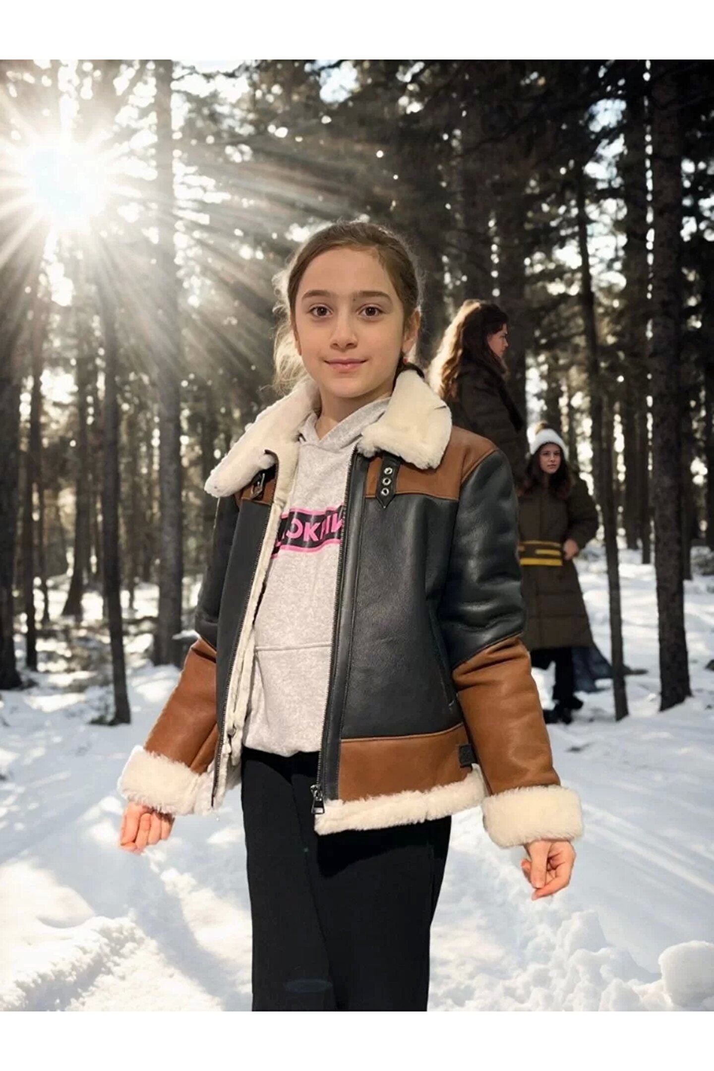 Silerra Çocuk Yakalı Parçalı Kürk - Kahve