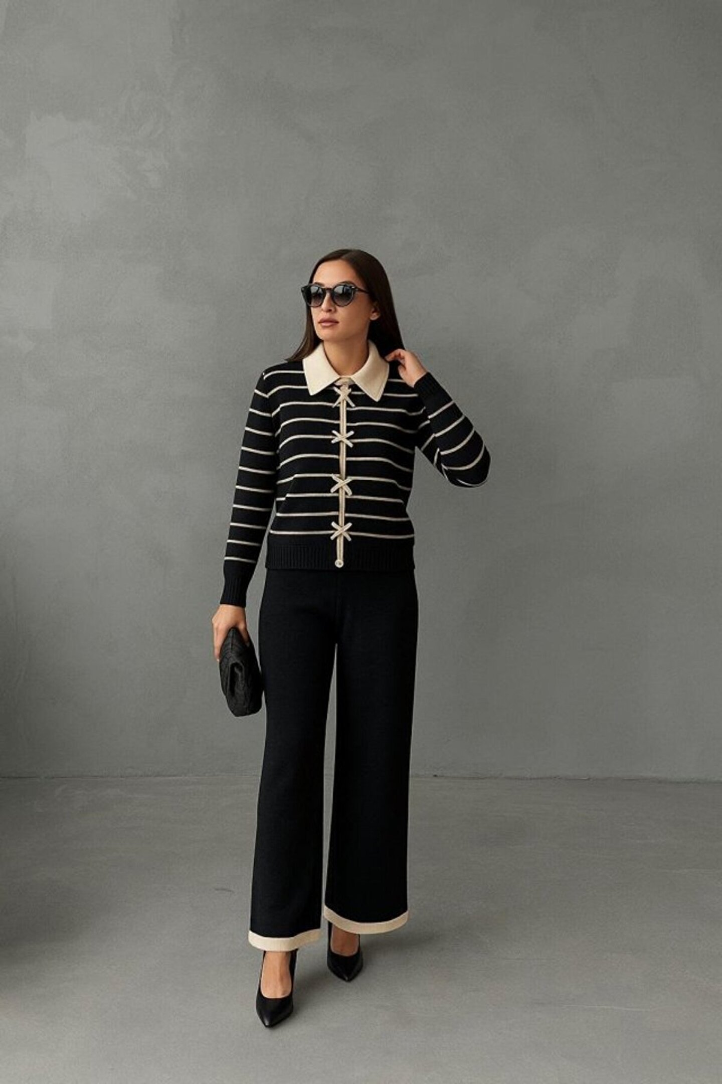EQURİ Kadın şerit Detay Bol Paça Pantolu ıkılı Takım