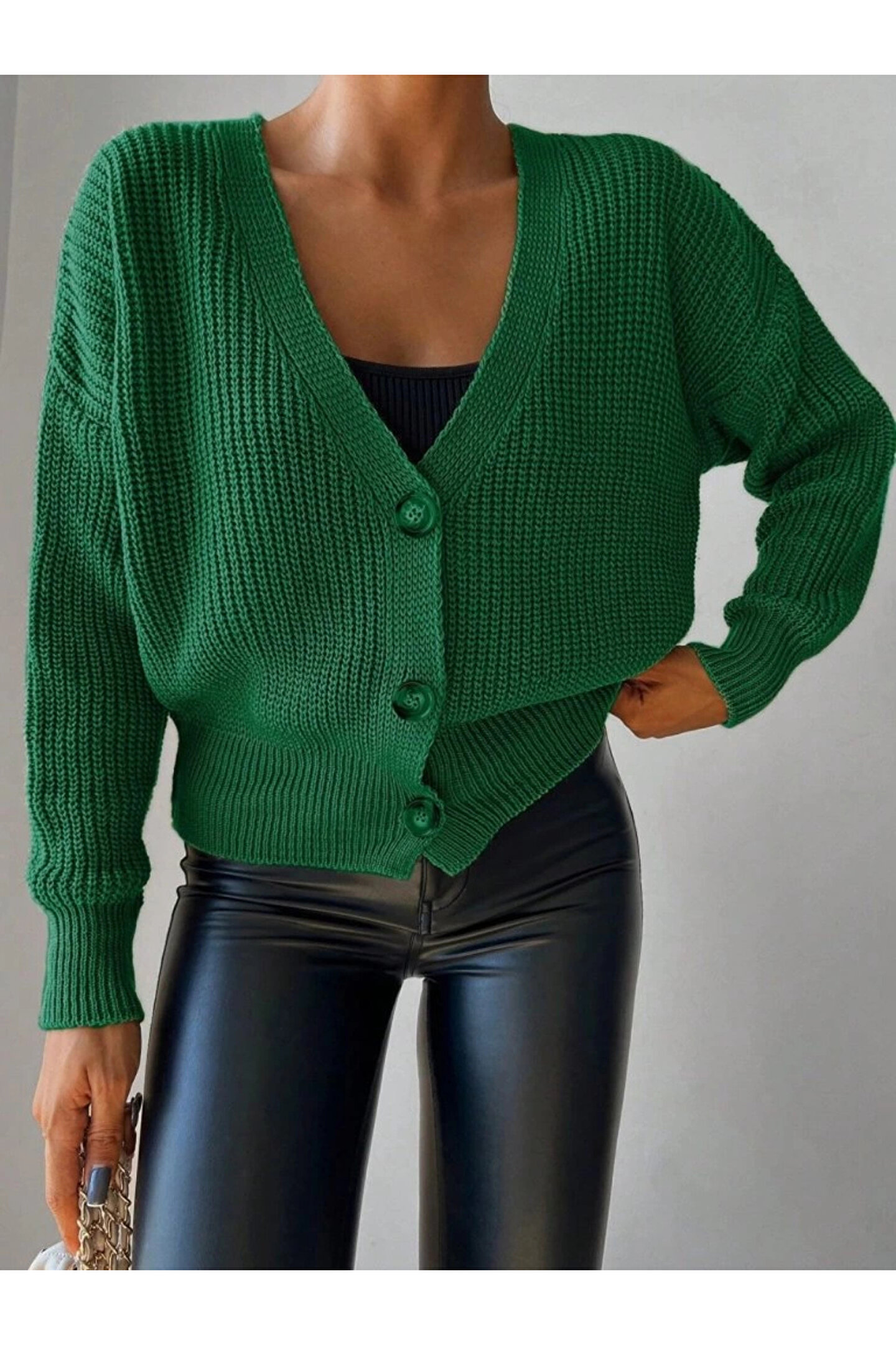 V Yaka Düğmeli Midi Boy Siyah Triko Hırka