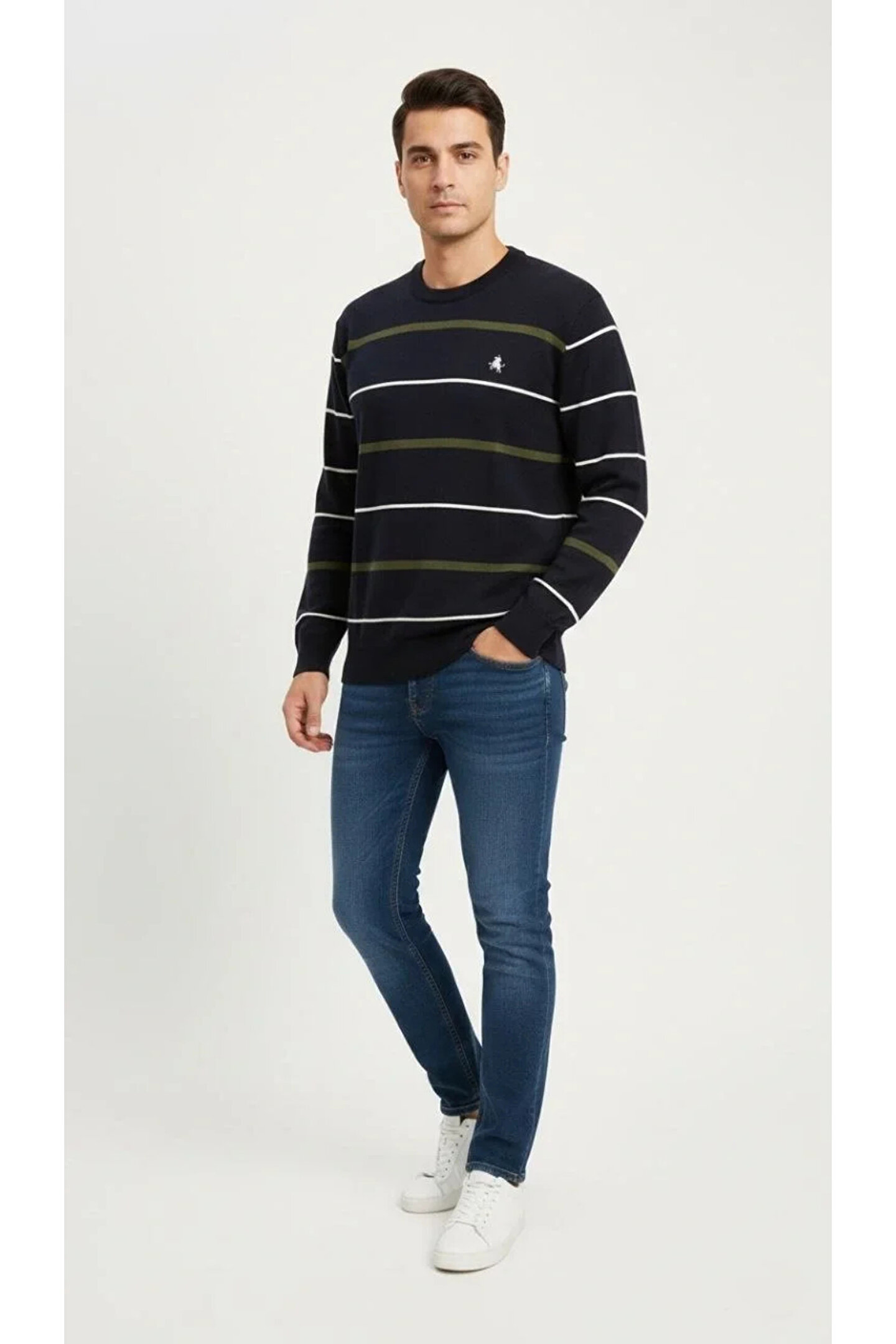 Silerra Erkek Bisiklet Yaka Cizgili Triko Kazak yumuşak dokulu Pamuklu ince Dokuma, uzun kollu Rahat Regular