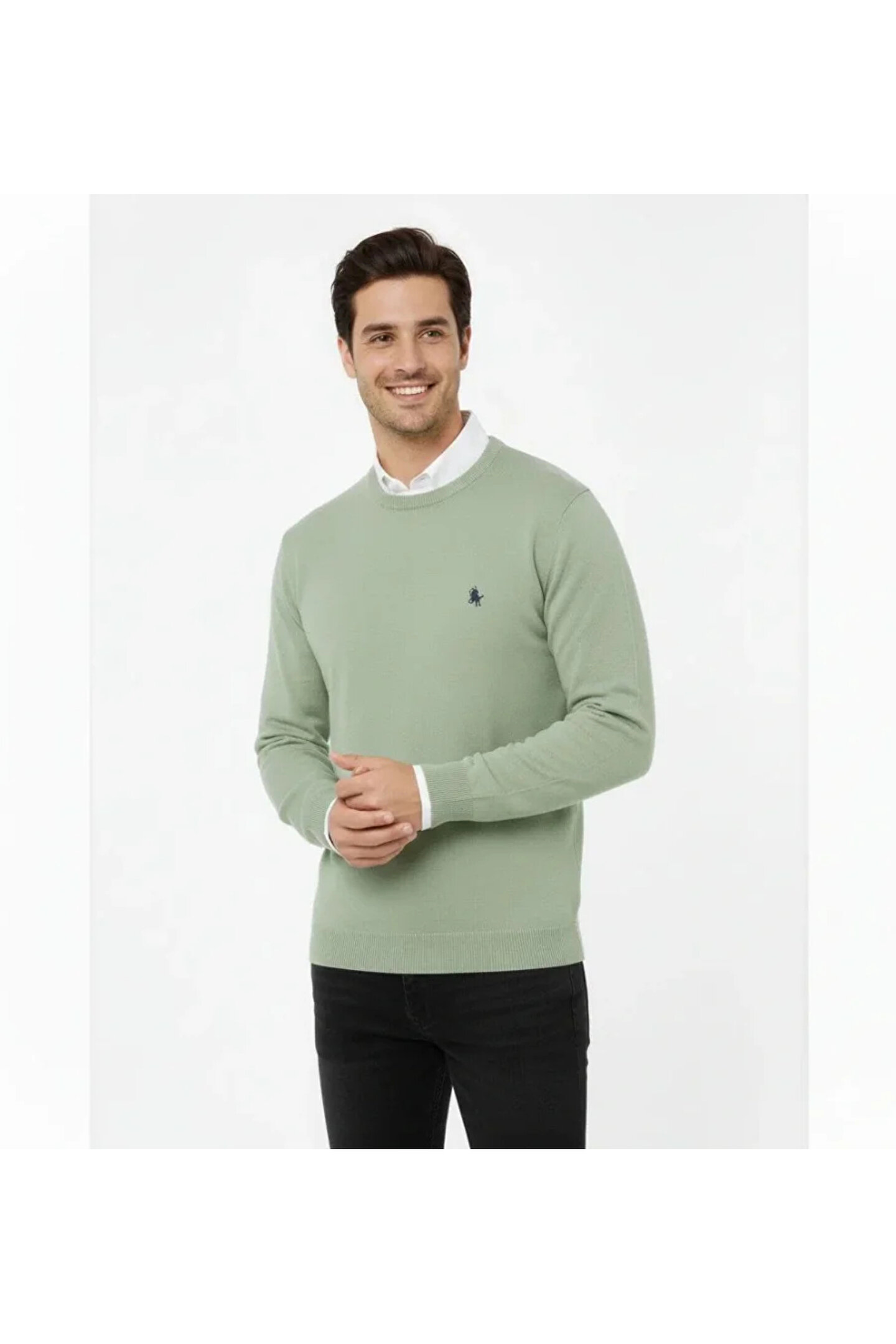 Erkek Bisiklet Yaka Nakış Işlemeli Triko Kazak Yumuşak Dokulu Pamuklu Ince Dokuma, Uzun Kollu Rahat