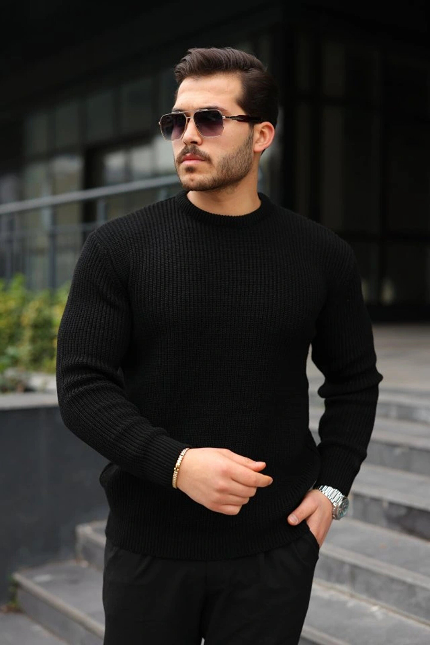 Erkek Bisiklet Yaka Örme Kazak