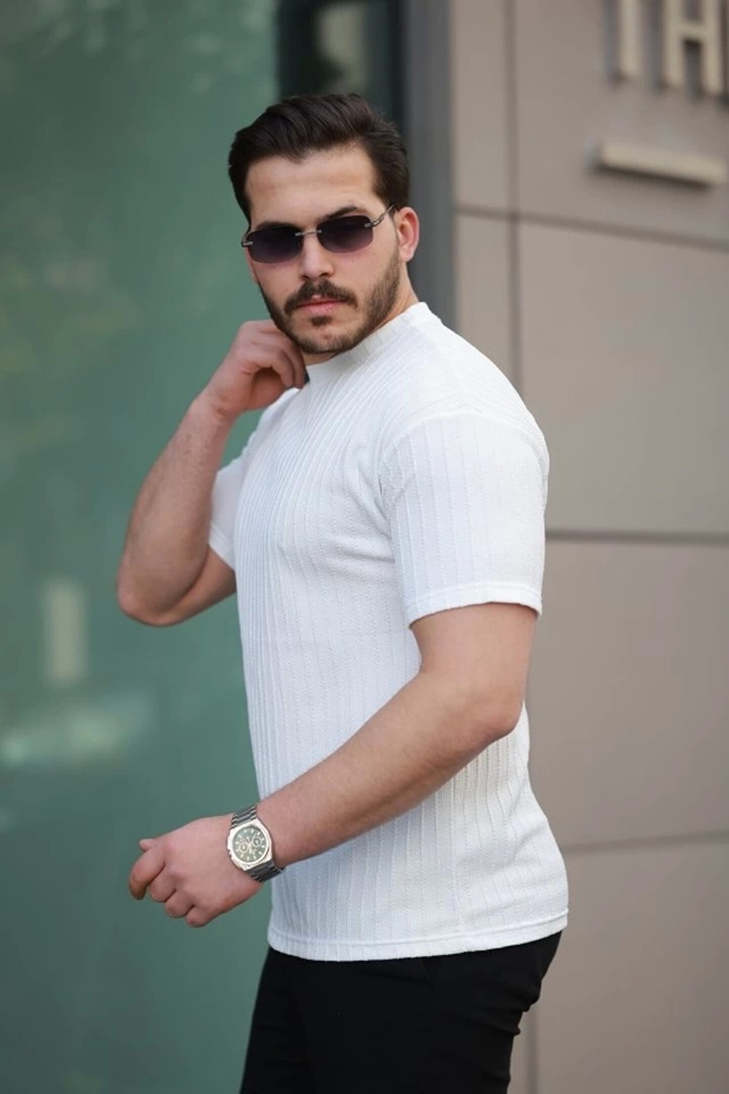 Silerra Erkek Kısa Kollu örgü Kumaş Bisiklet Yaka T-shirt