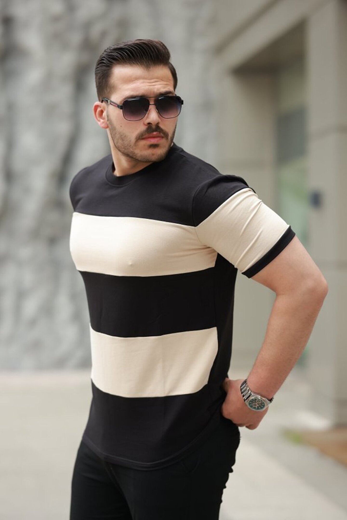 Erkek Parçalı Renk Kısa Kollu Tişört