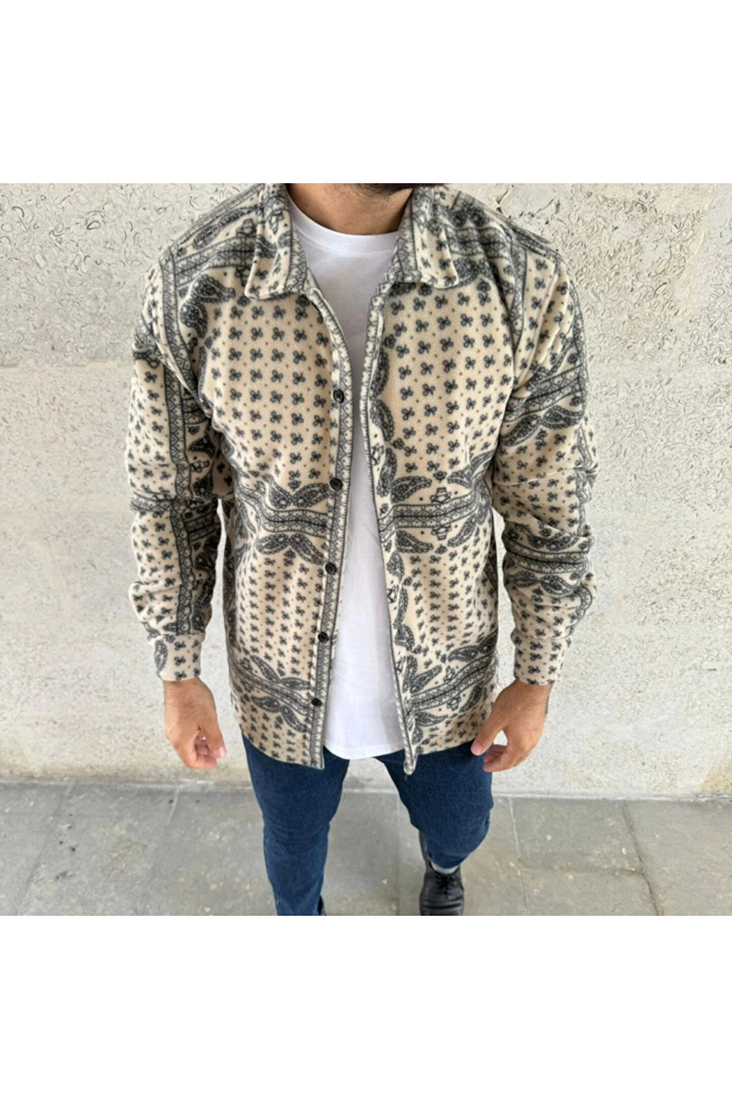 Erkek Polar Fermuarlı Sweatshirt – Kapüşonsuz, Cepli, Yumuşak Dokulu, Oversize Rahat Kalıp, Kışlık Sıcak Tutan Fermuarlı Üst - Bej