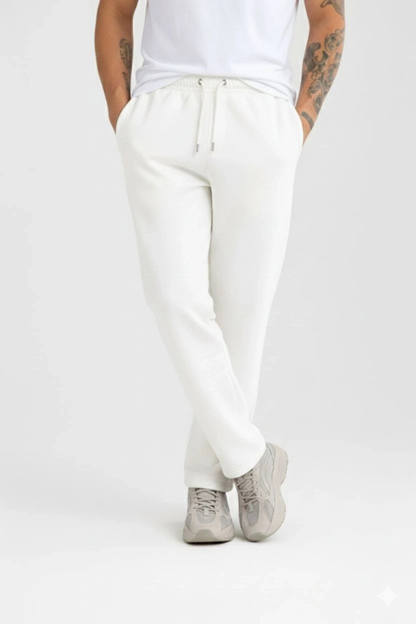Erkek Üç Iplik Kışlık Pamuklu Ovarsize Bağcıklı Düz Paça Cepli Eşofman Altı Spor Rahat Model - Beyaz