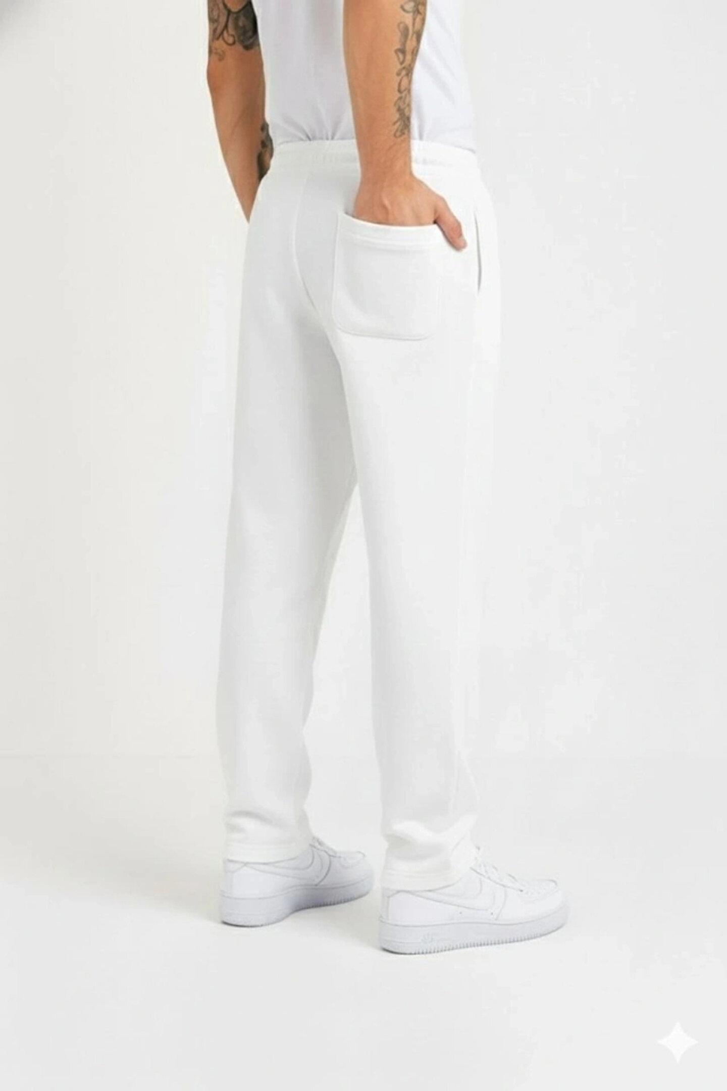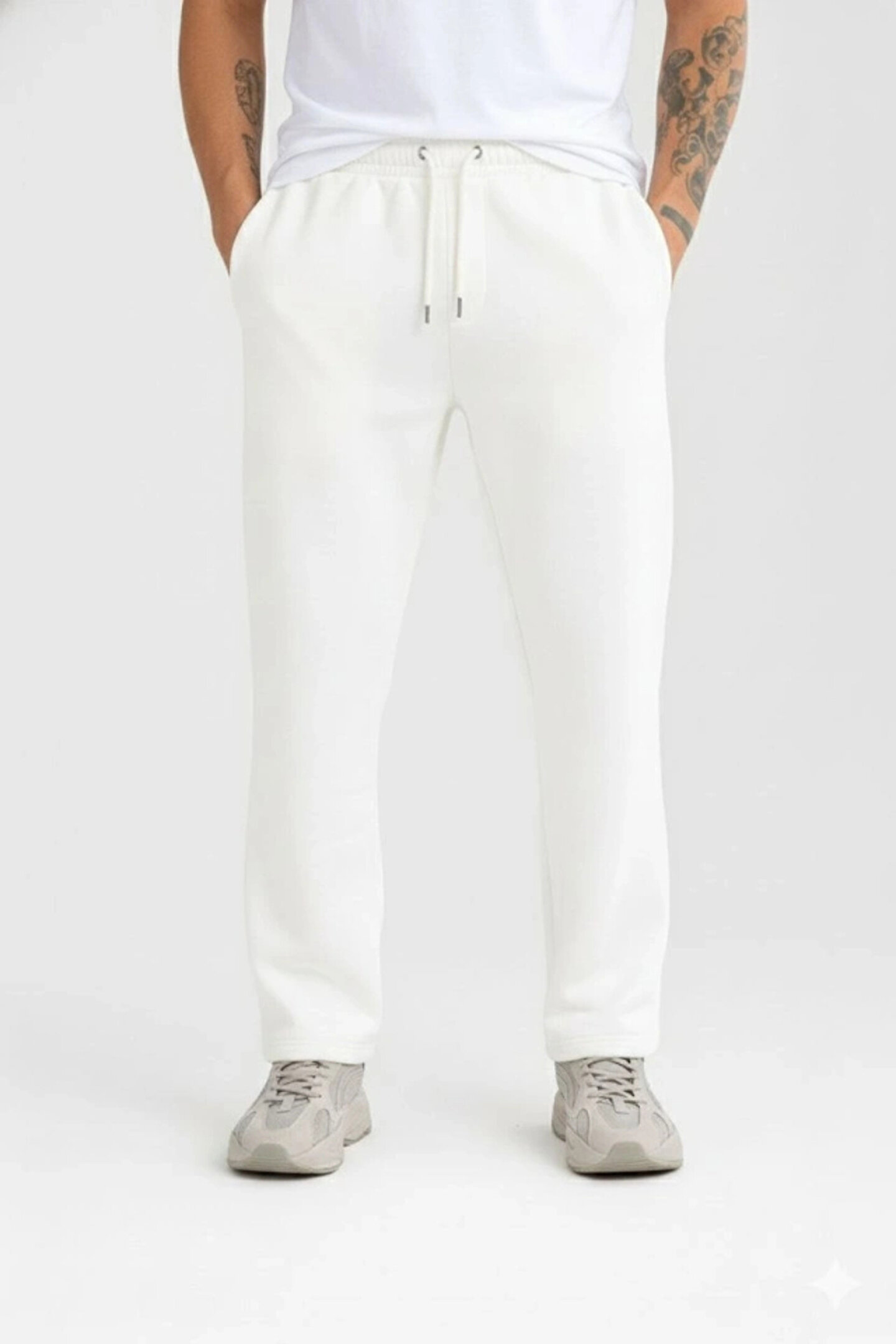 Erkek Üç Iplik Kışlık Pamuklu Ovarsize Bağcıklı Düz Paça Cepli Eşofman Altı Spor Rahat Model - Beyaz