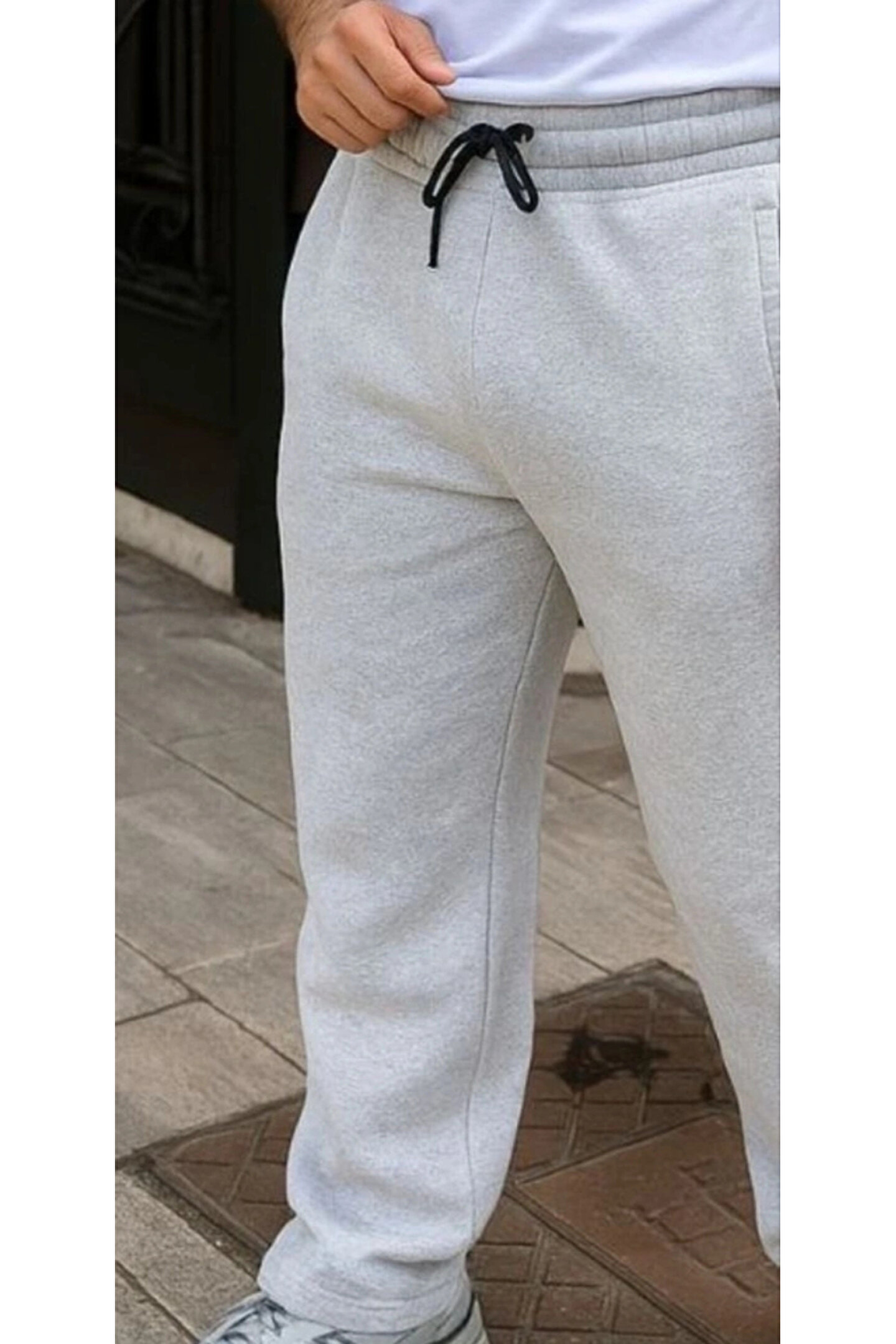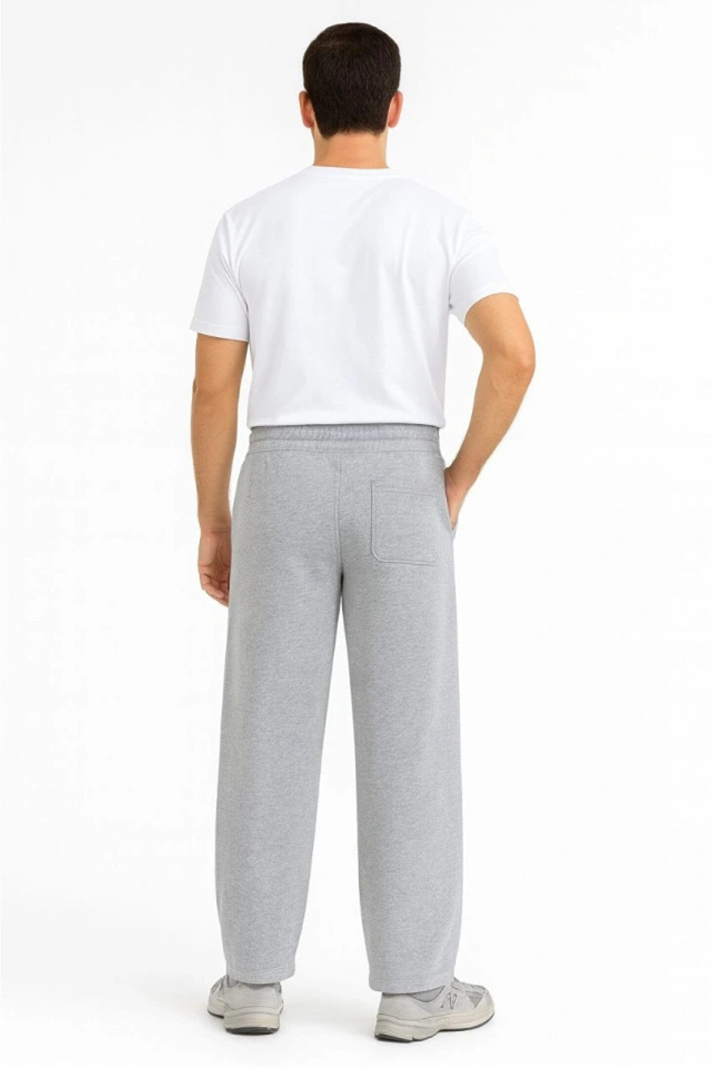 Erkek Üç Iplik Kışlık Pamuklu Ovarsize Bağcıklı Düz Paça Cepli Eşofman Altı Spor Rahat Model - Gri