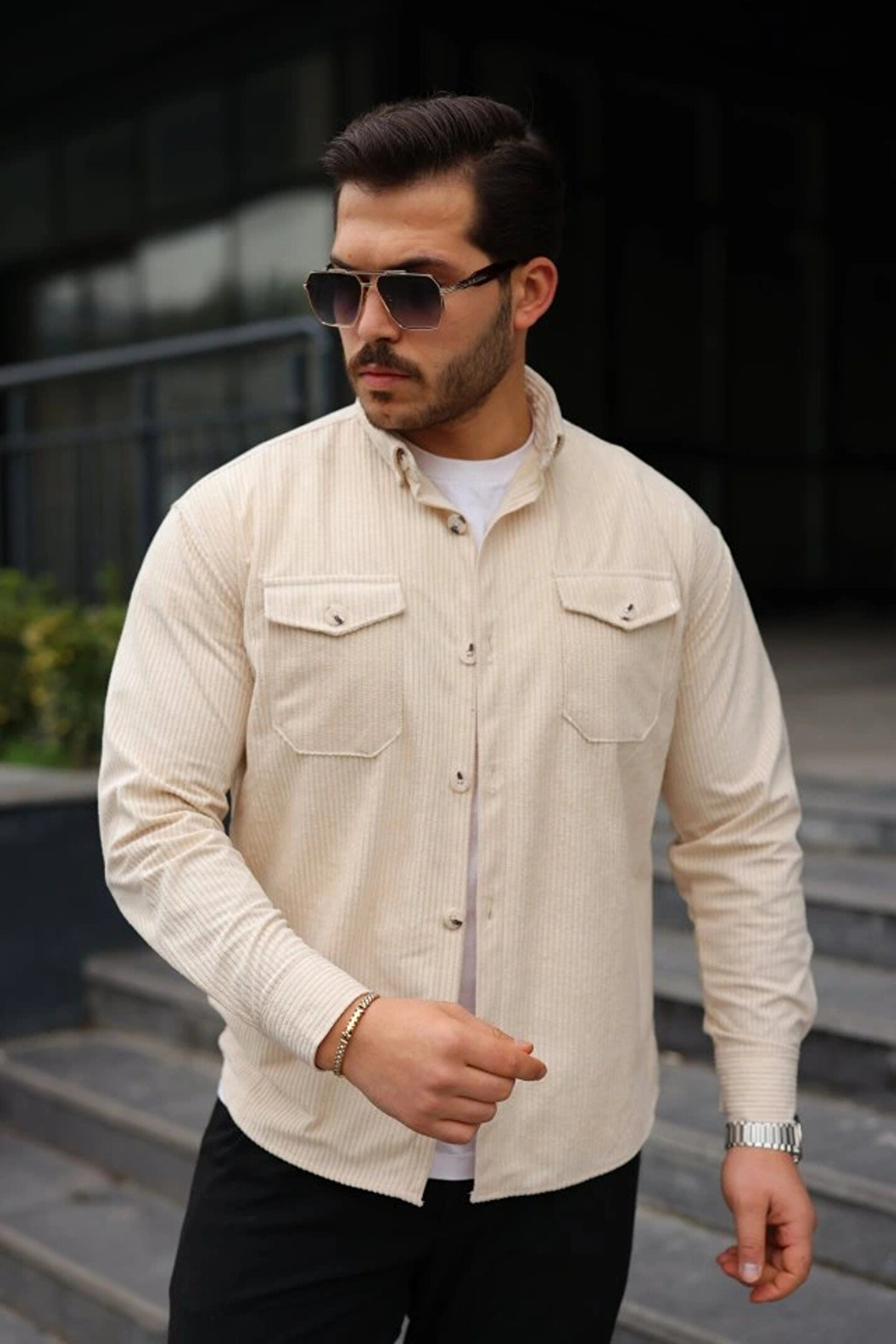 Erkek Uzun Kollu Cepli Kadife Gömlek