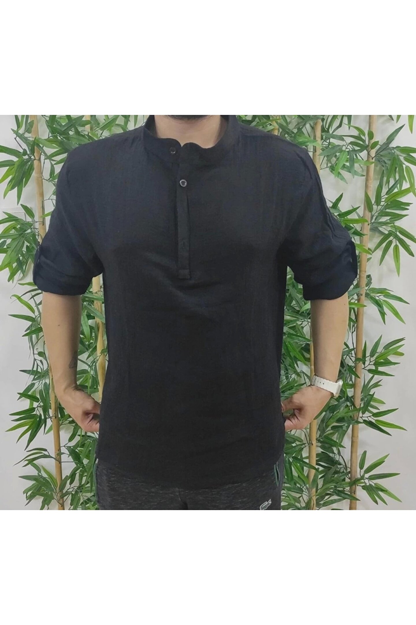 Erkek Uzun Kollu Hakim Yaka Düğmeli Erkek Müslim Gömlek