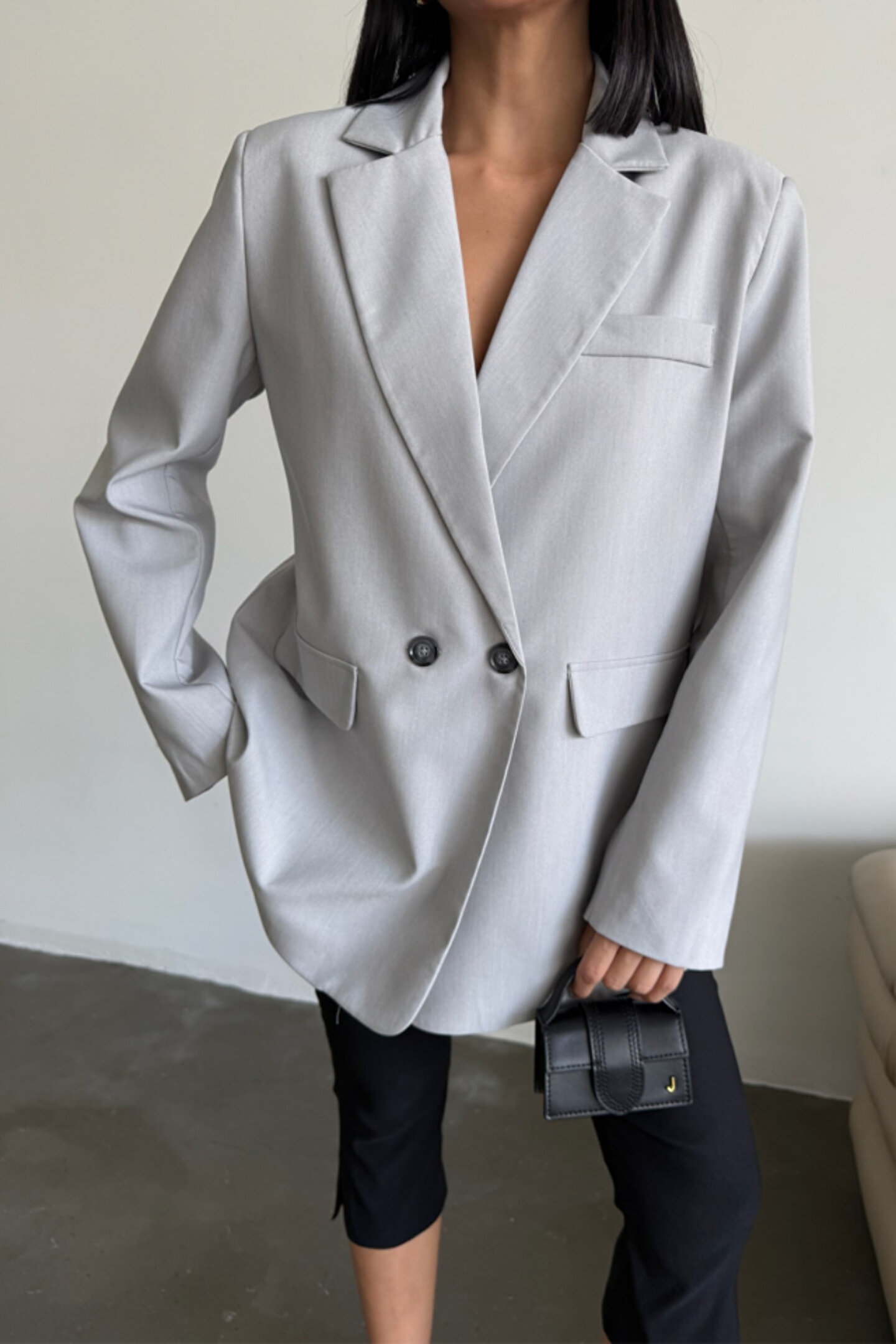 Silerra Gökyüzü Moda ARKASI YIRTMAÇ DETAYLI CEKET - Gri