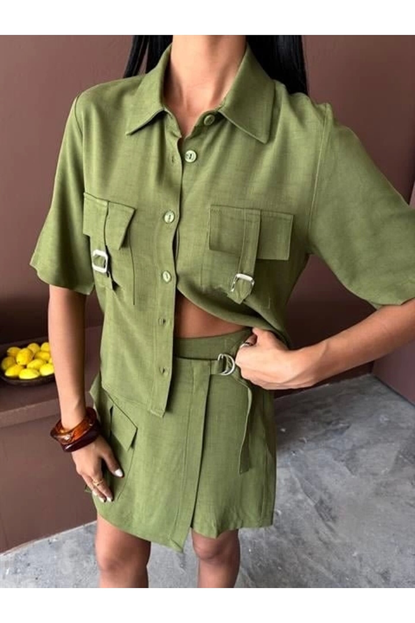 Gömlek Şort Etek Viscon Keten Takım 10162
