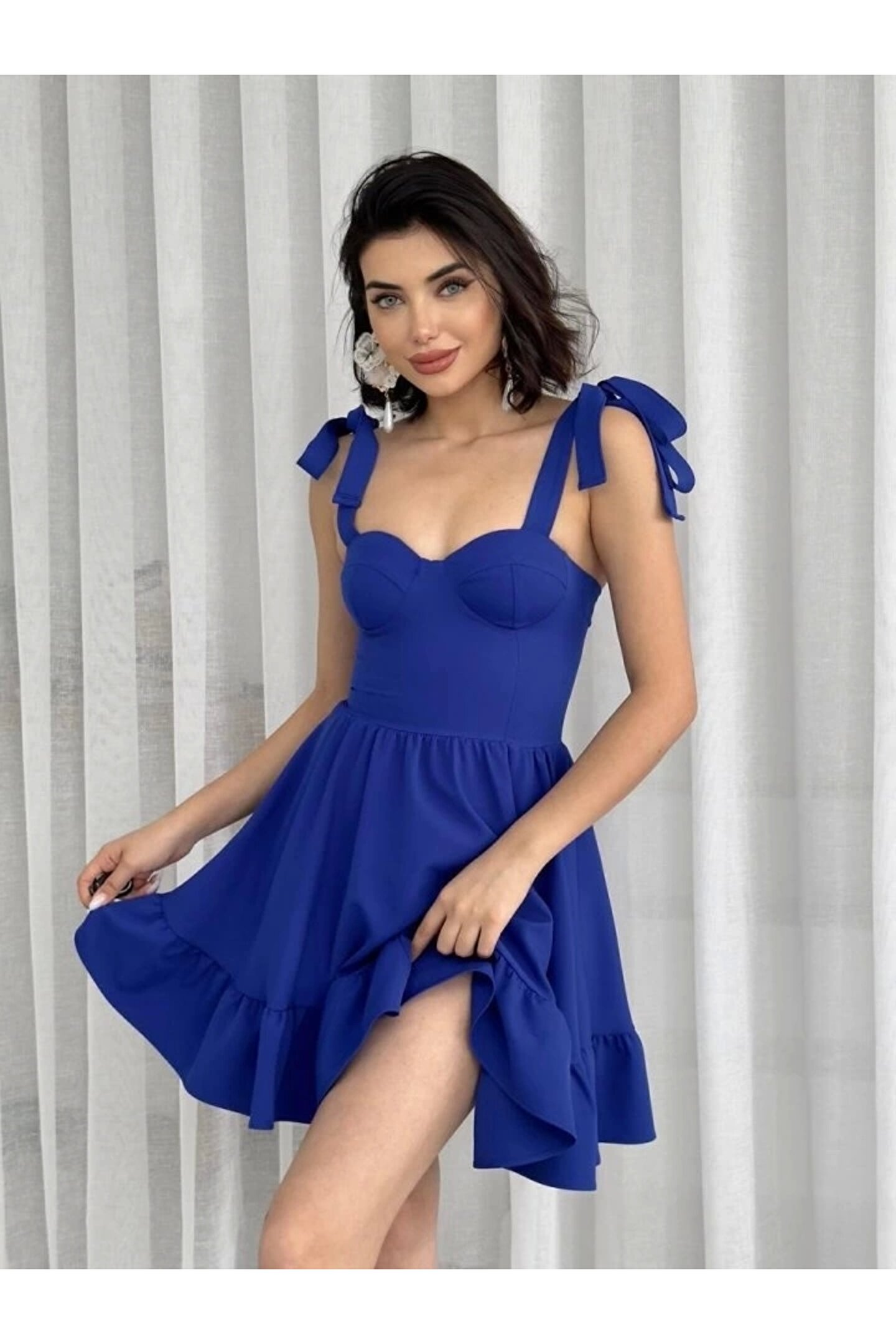 İP ASKILI BAĞLAMALI ATLAS ELBİSE