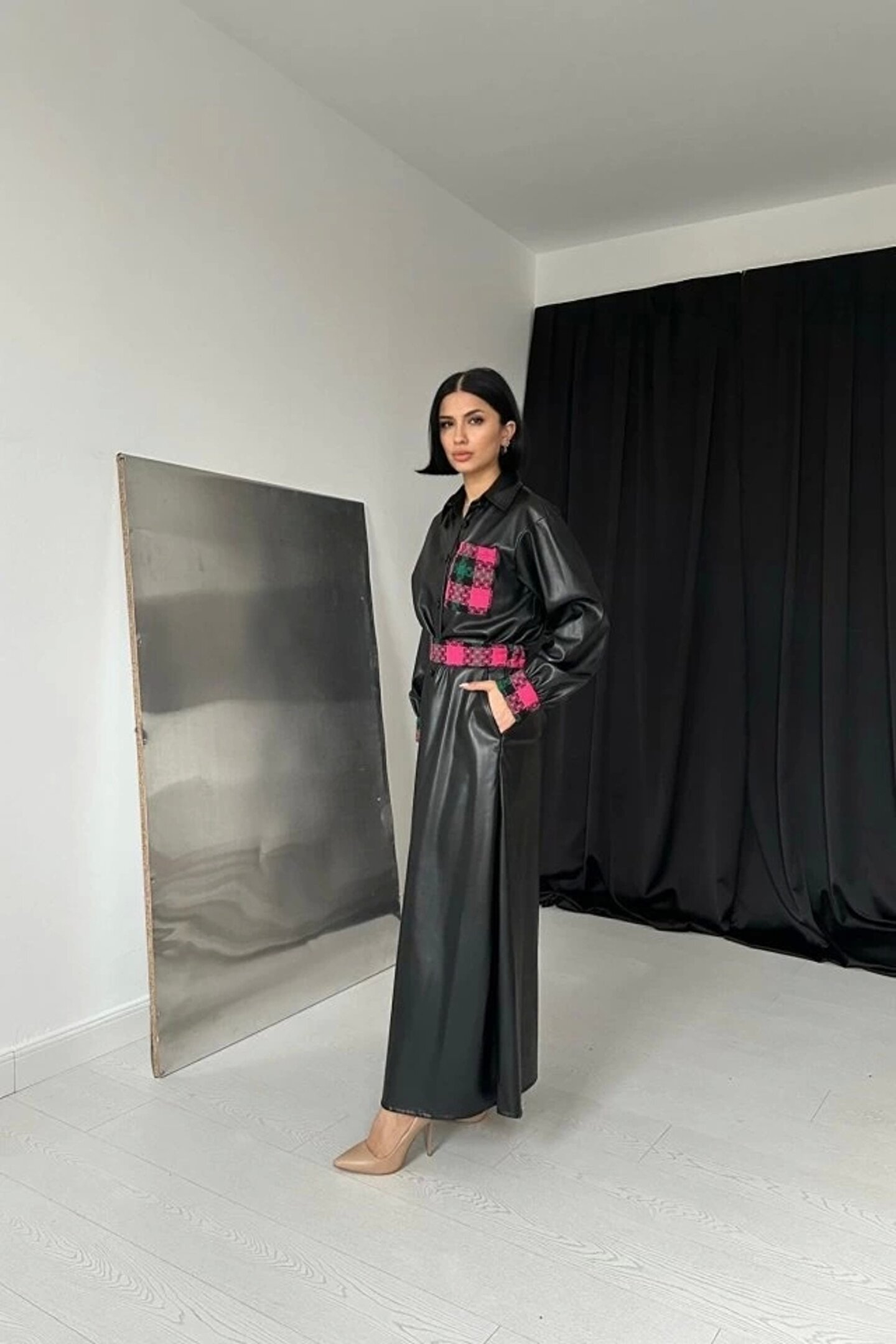 Siyah Garnili Etekli Deri Takım