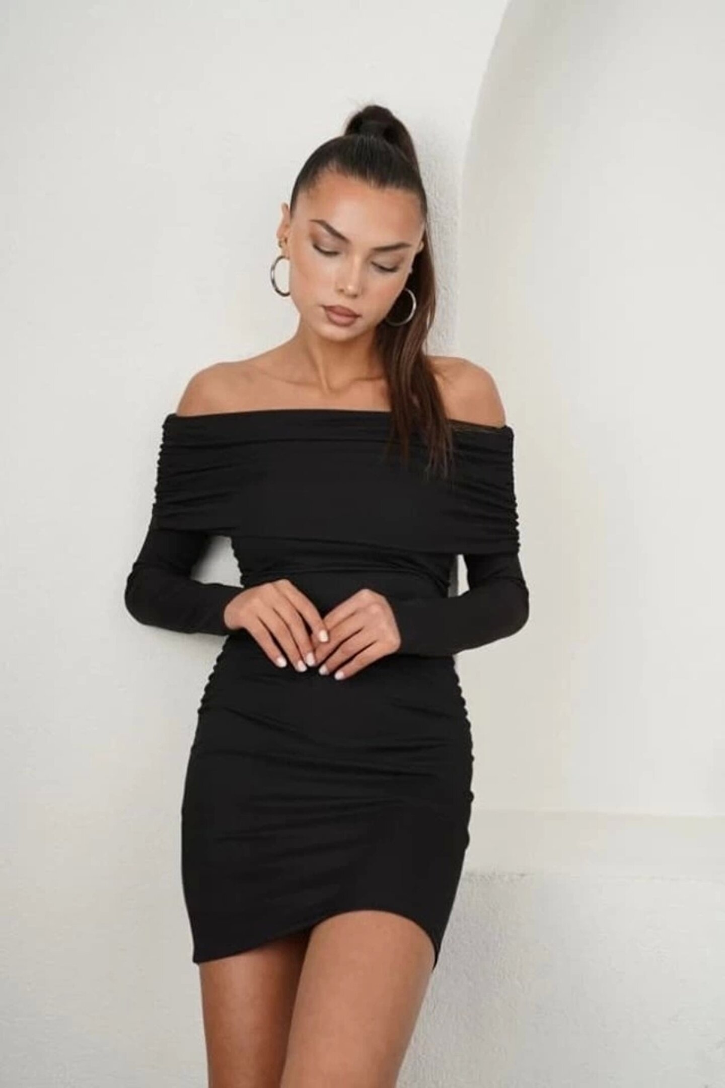 Kadın Madonna Mendil Yaka Fırsat ürün Büzgülü Mini Elbise