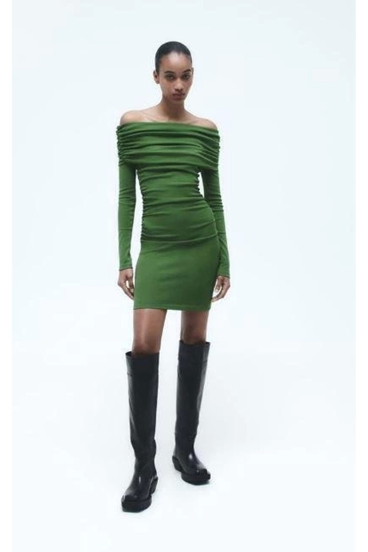 Kadın Madonna Mendil Yaka Fırsat ürün Büzgülü Mini Elbise