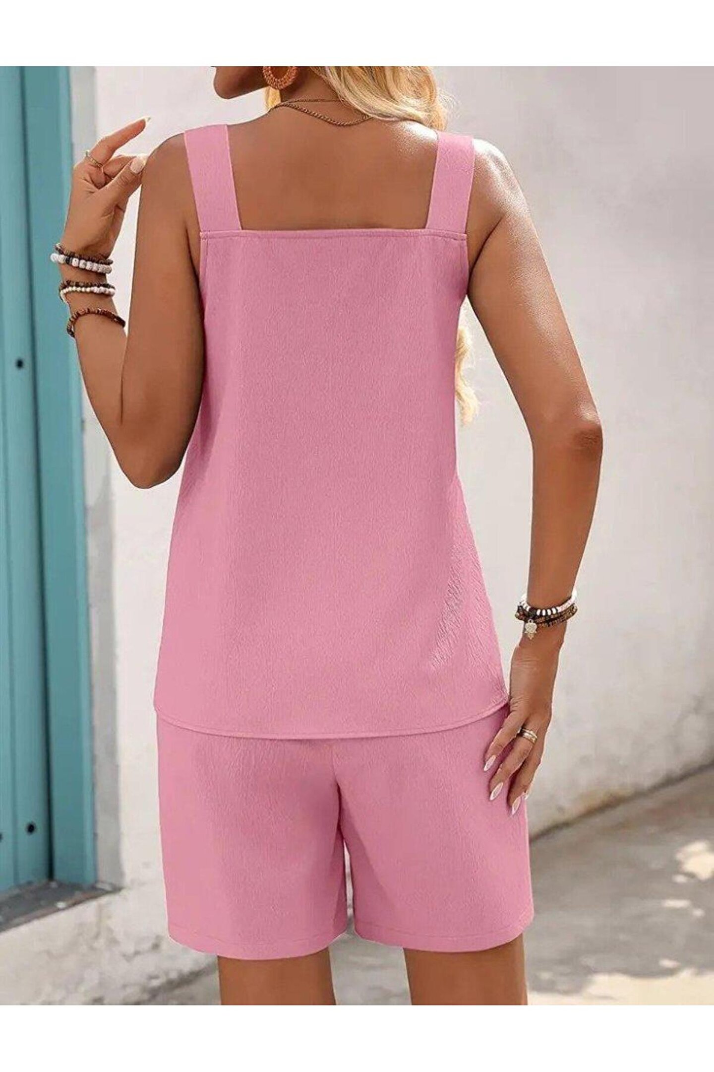 Silerra Kadın Askılı Yuvarlak Yaka Kuş Gözü Detaylı Bürümcük Bluz Ve Short Ikili Takım