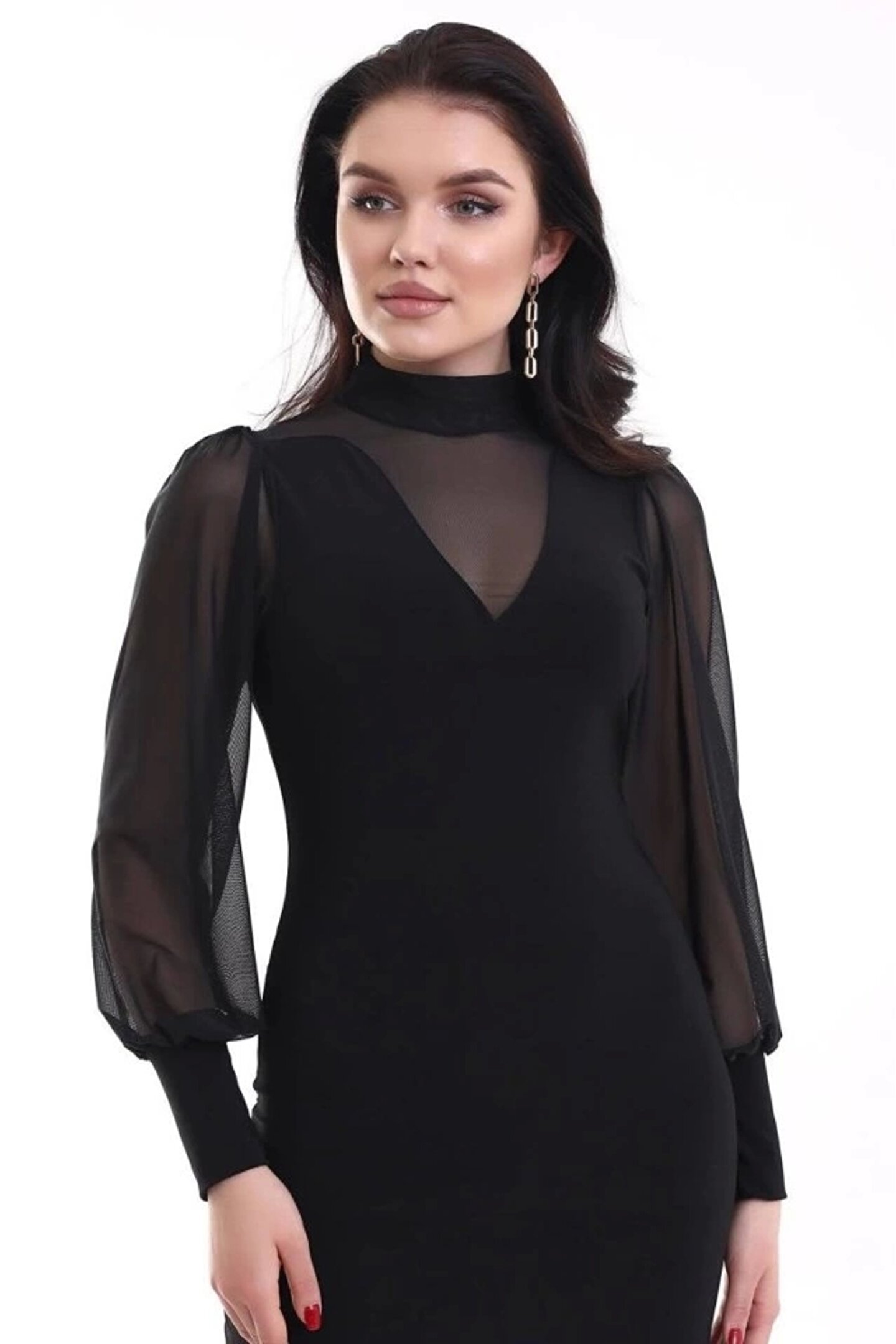 Kadın Balıkçı Yaka Transparan Detay Fırsat ürün Sandy Kumaş Mini Elbise