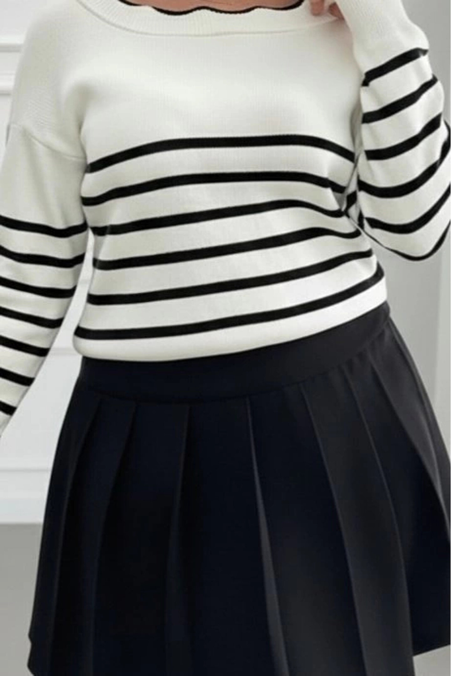 Silerra Kadın Beyaz Sırt Bağlama Detaylı çizgi Desen Triko Bluz