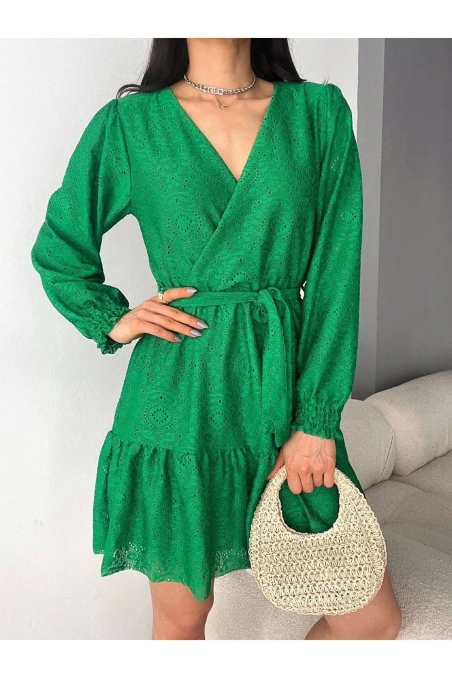 Kadın Fırsat ürünü Kruvaze Yaka Güpürlü ini Elbise