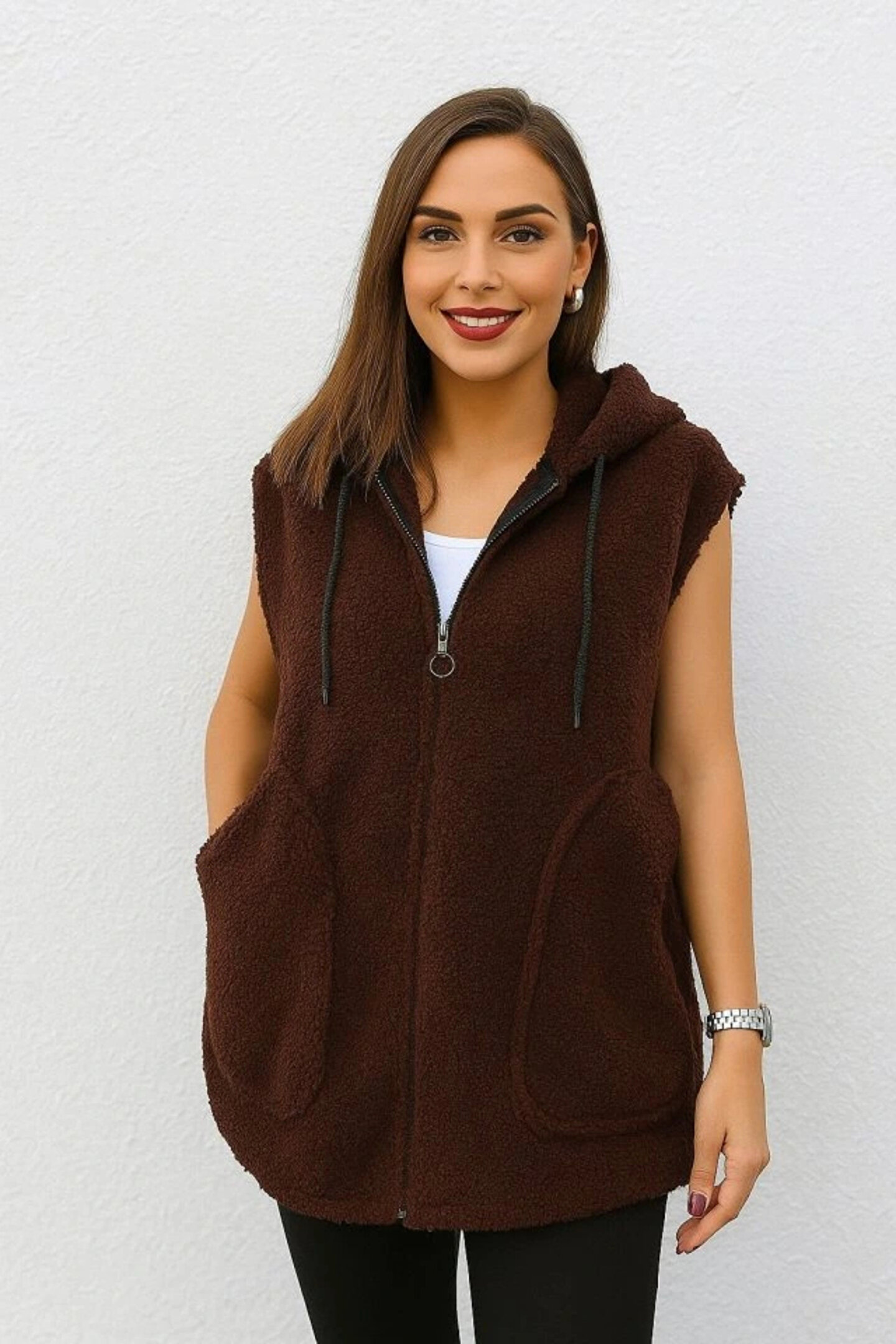 Kadın Kapüşon Ve Fermuar Detay Welsoft Kolsuz Yelek