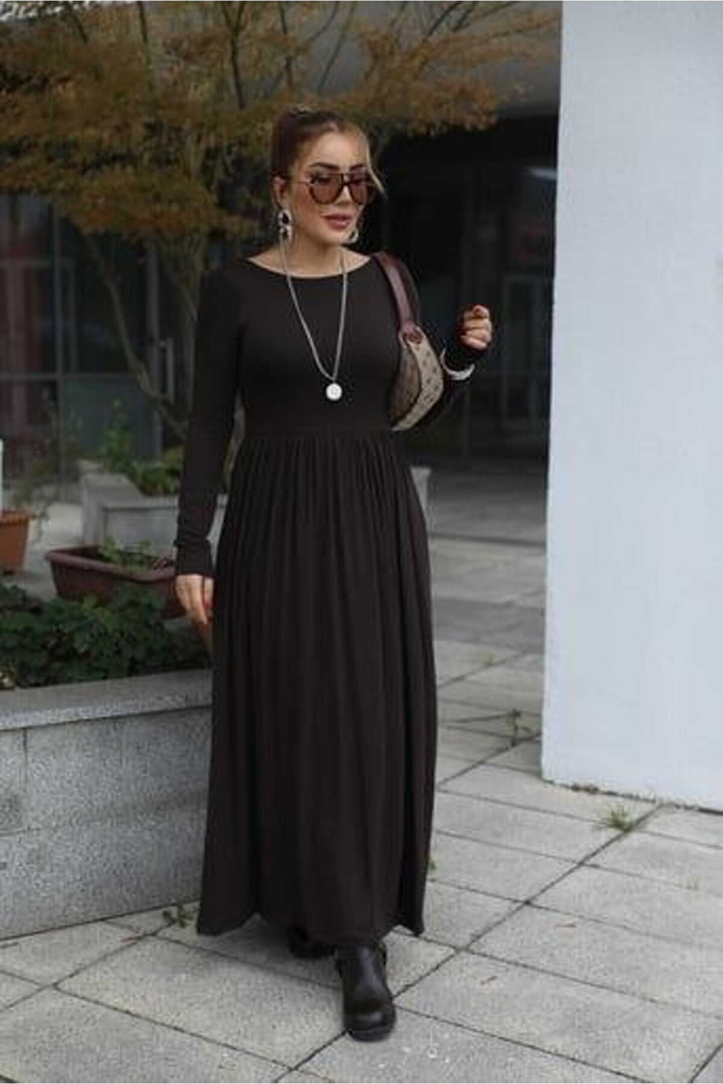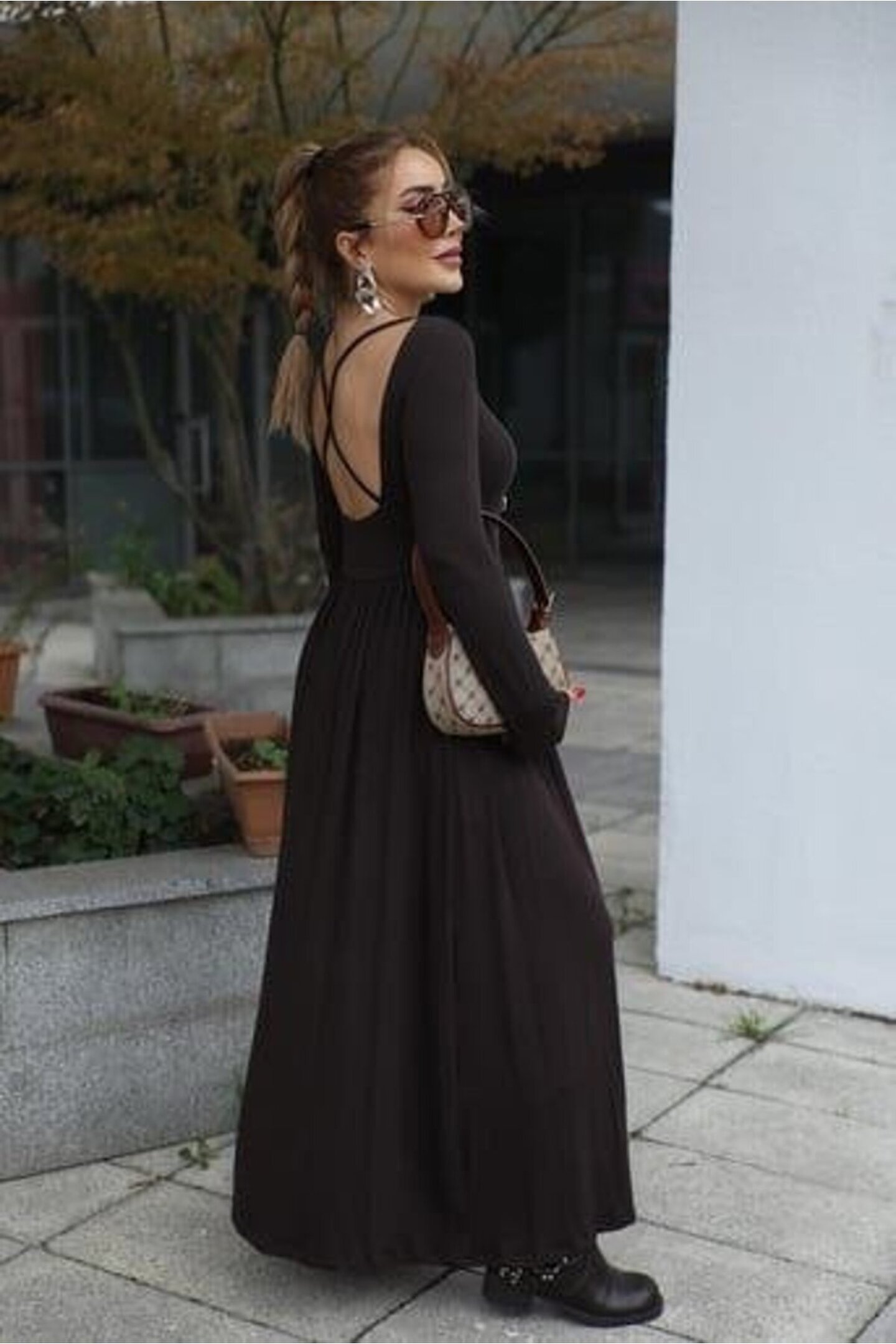 Kadın Kayık Yaka Sırt Dekoltesi Ve Yırtmaç Detay Maxi Boy Elbise.; Ürün detayları ve kullanım hissi kişisel tercihlere göre değişiklik gösterebilir.