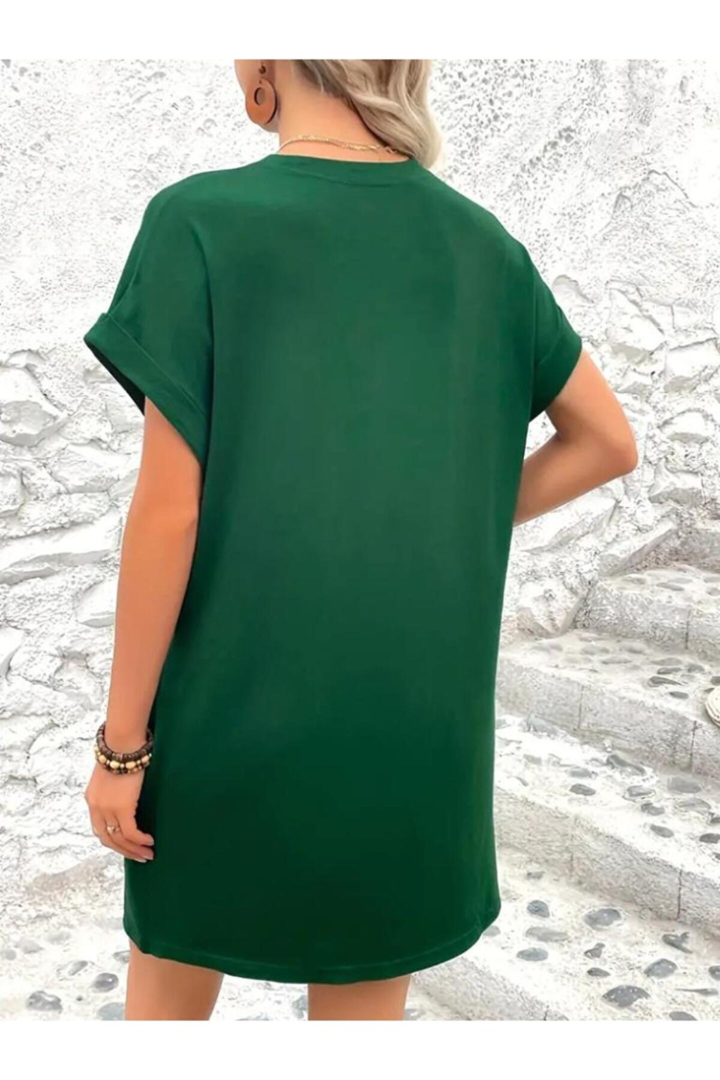 Kadın Kısa Kollu Bisiklet Yaka Cepli Kelebek Baskılı Viskon Elbise