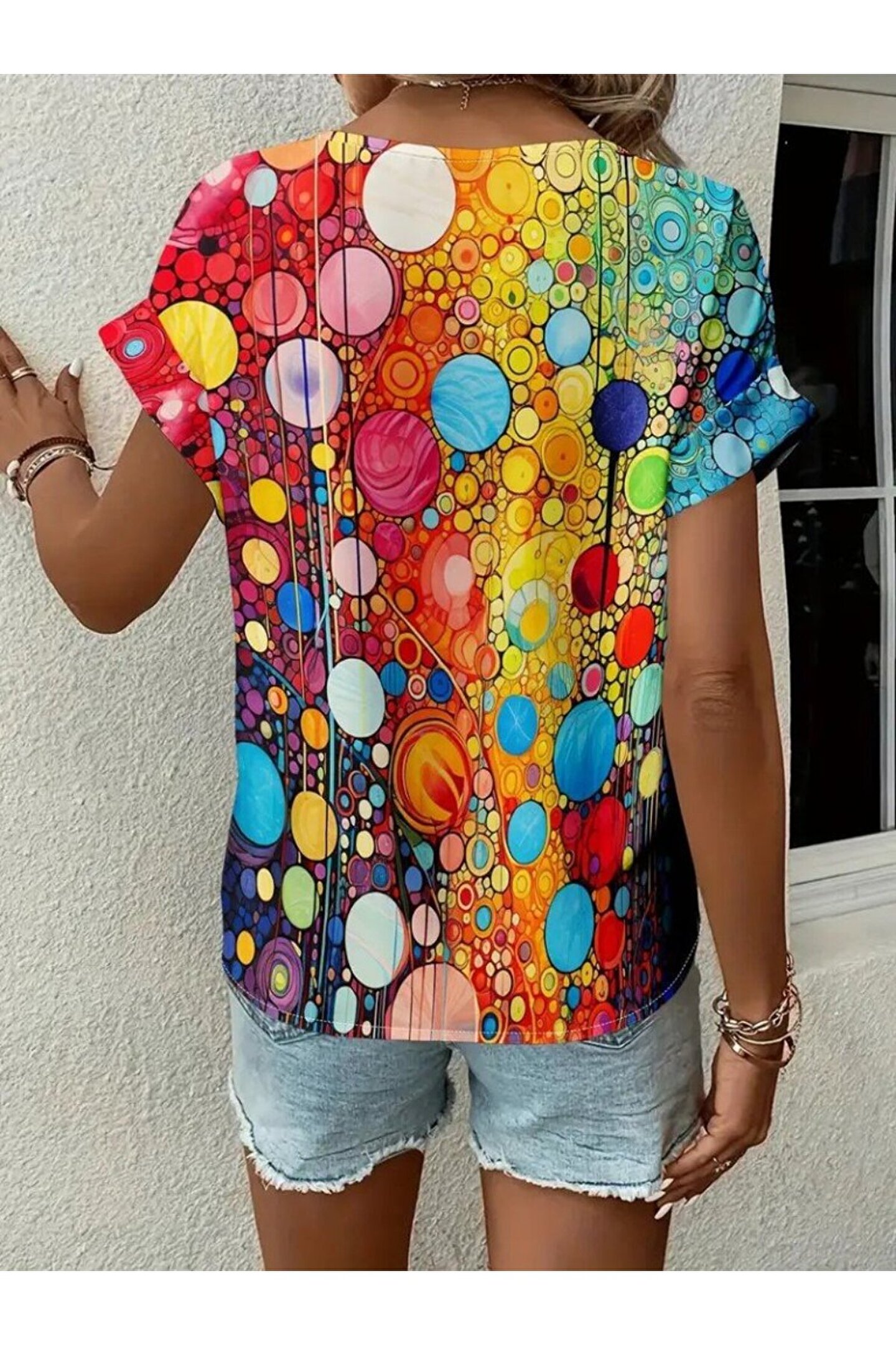 Kadın Kısa Kollu V Yakalı Desenli Süprem Bluz