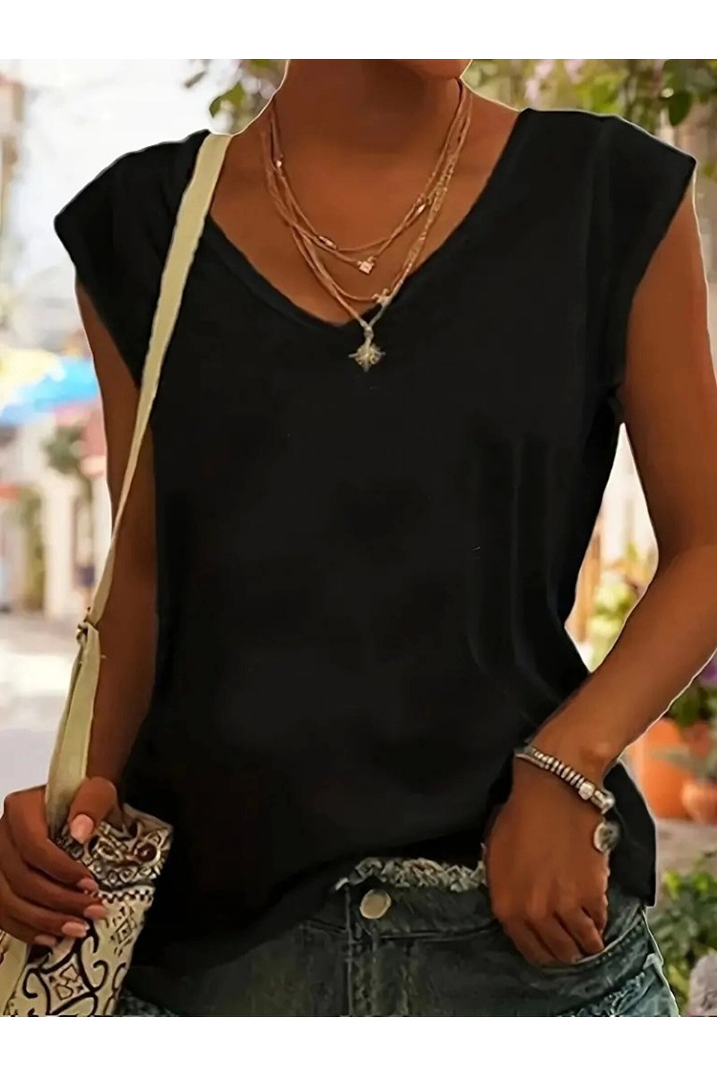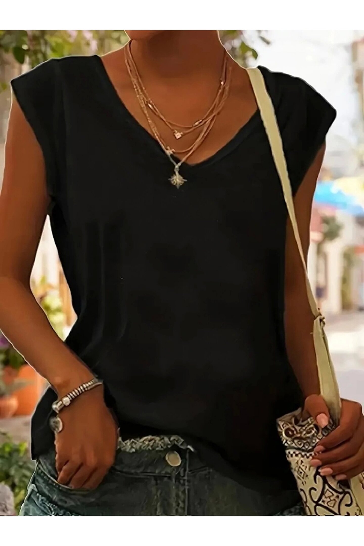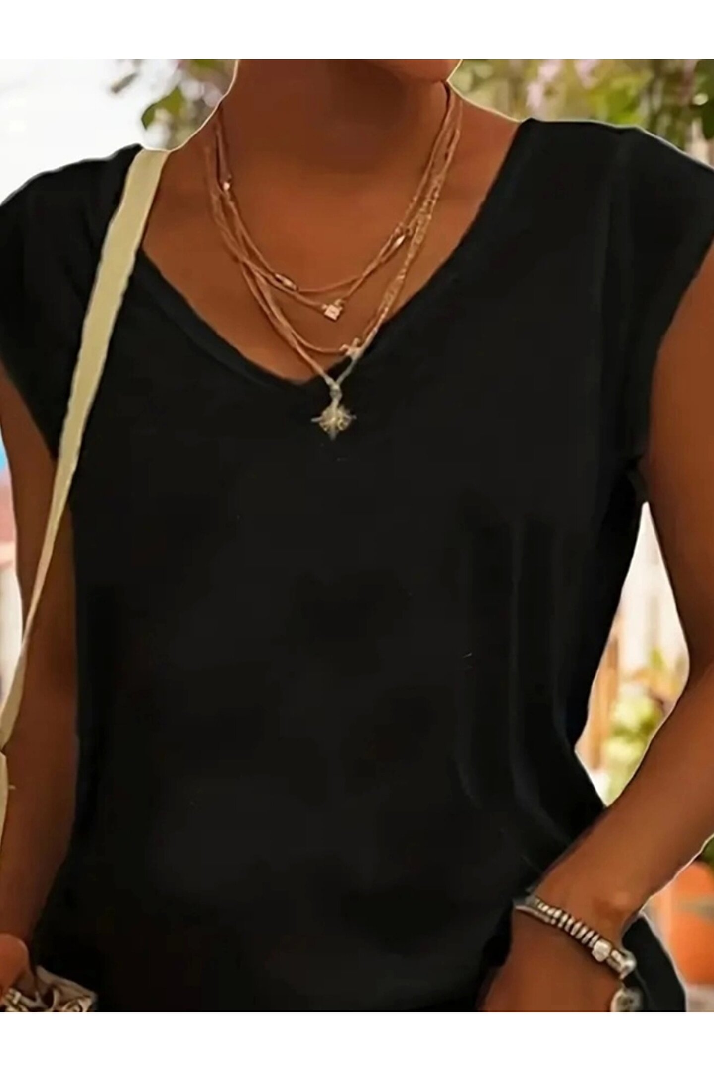 Kadın Kısa Kollu V Yakalı Viskon Bluz