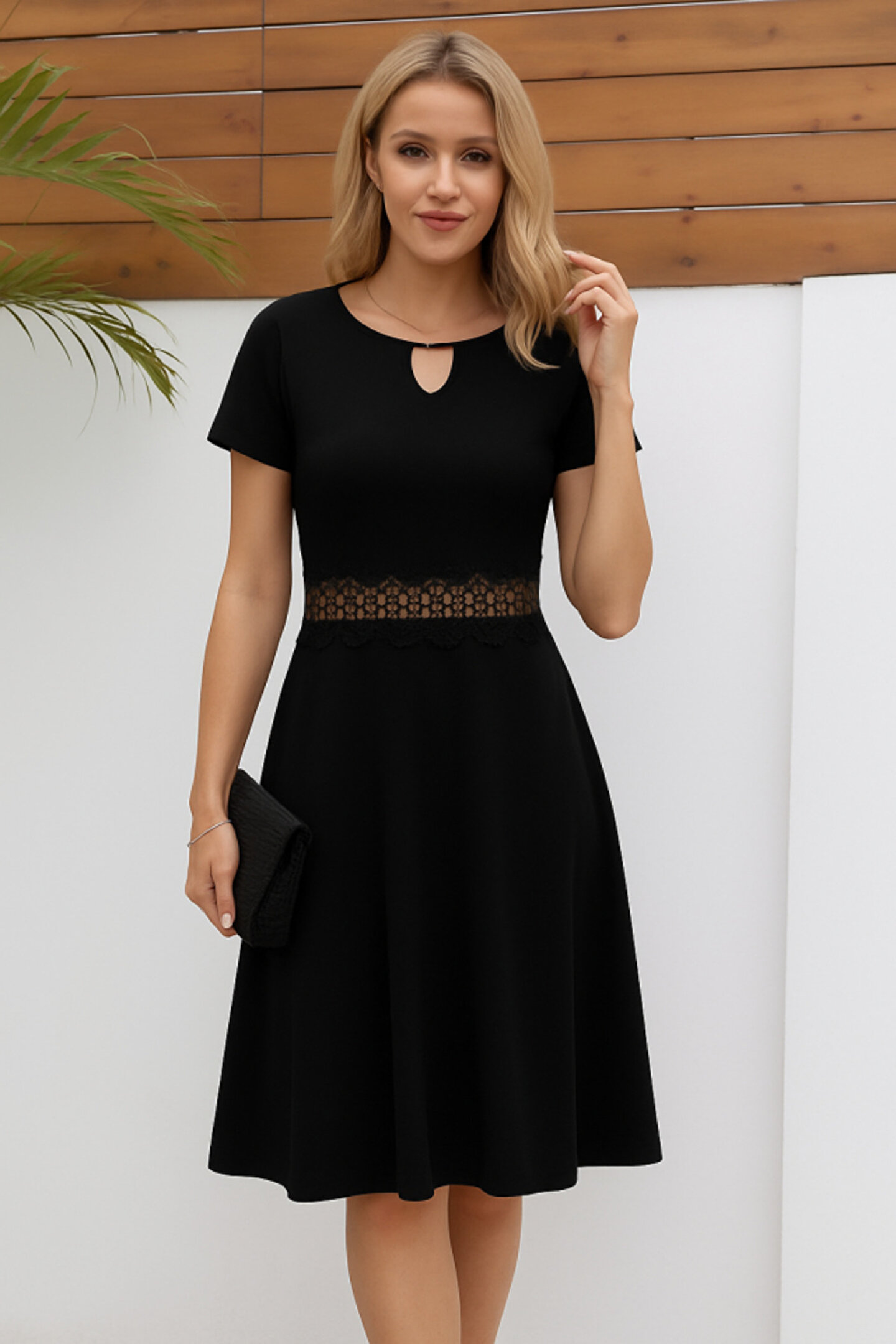 Kadın Kısa Kollu Yuvarlak Yaka Damla Detaylı Janjan Elbise